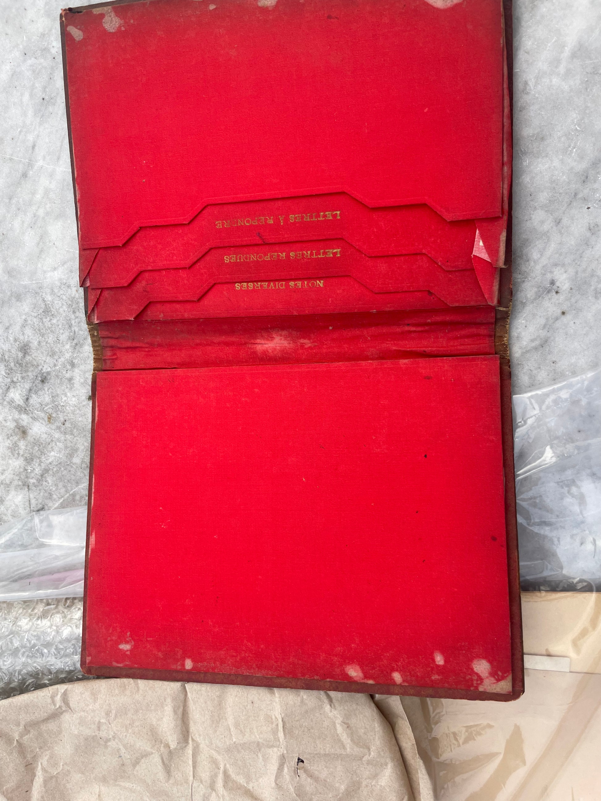 L’interno, rivestito in seta rossa, è suddiviso per lettere lette e non lette, secondo un uso domestico diffuso nella seconda metà dell’Ottocento.