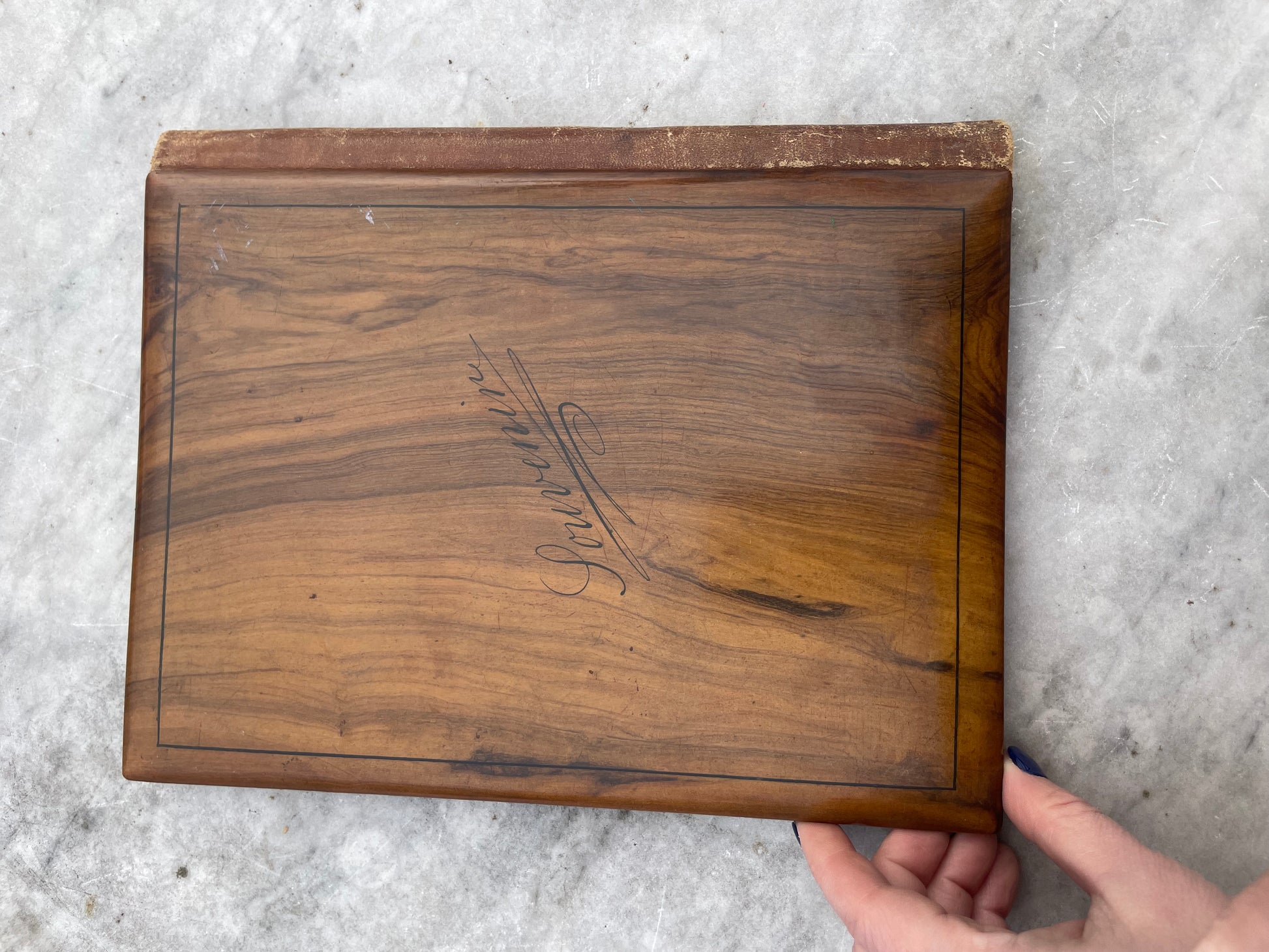 Sous-main porte-lettres en bois d’olivier marqueté, Sorrente – Naples, seconde moitié du XIXᵉ siècle