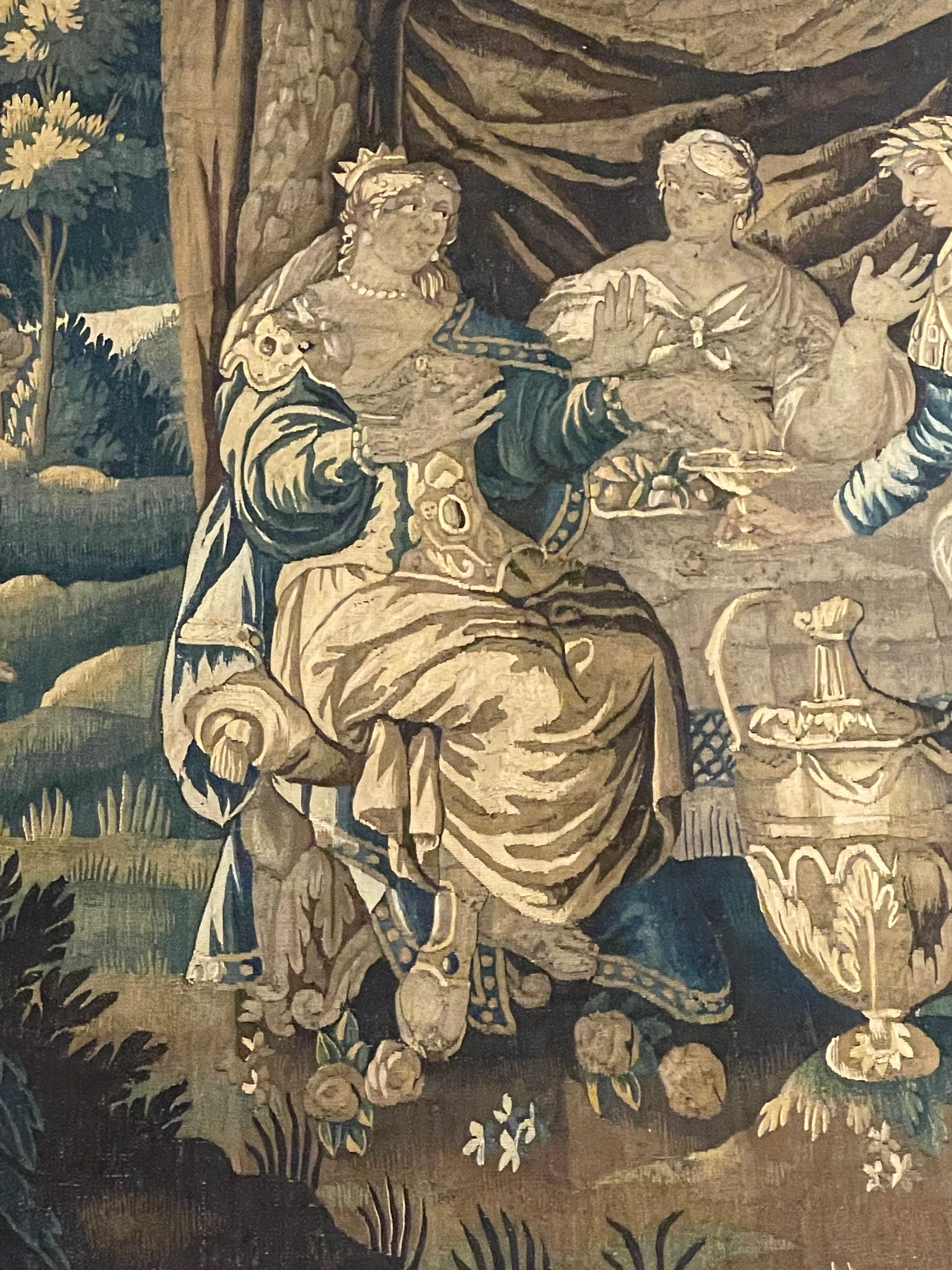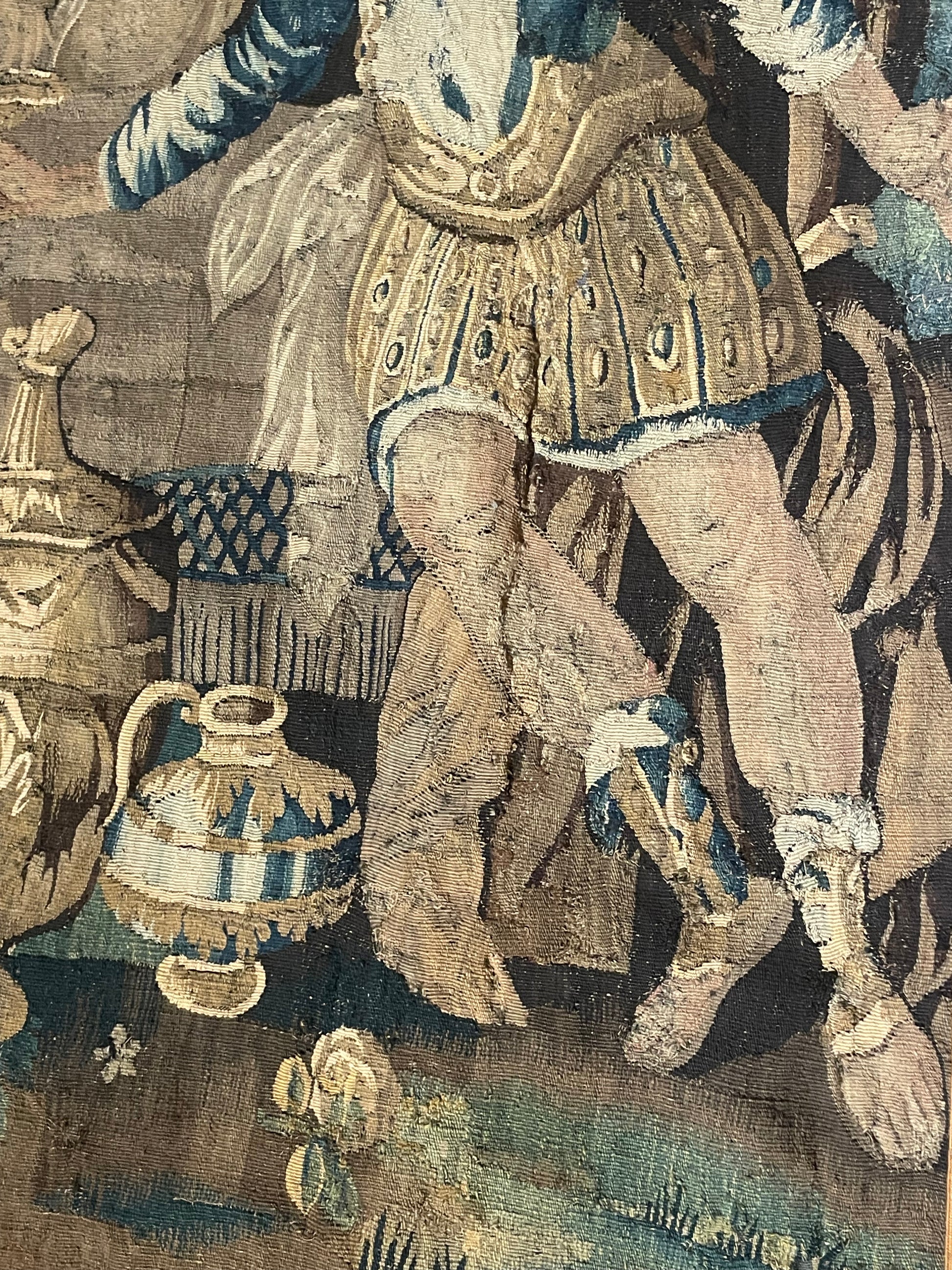 The tapestry most likely belongs to a series dedicated to the History of Mark Antony and Cleopatra, based on preparatory drawings by Isaac Moillon. Moillon, painter to the King and brother of the renowned still-life painter Louise Moillon, produced numerous preparatory drawings for tapestries woven in Aubusson. Among his most famous creations are the cycles dedicated to classical heroes and heroines, including the Story of Ulysses, woven many times and today represented in the collections of the Aubusson Tapestry Museum.