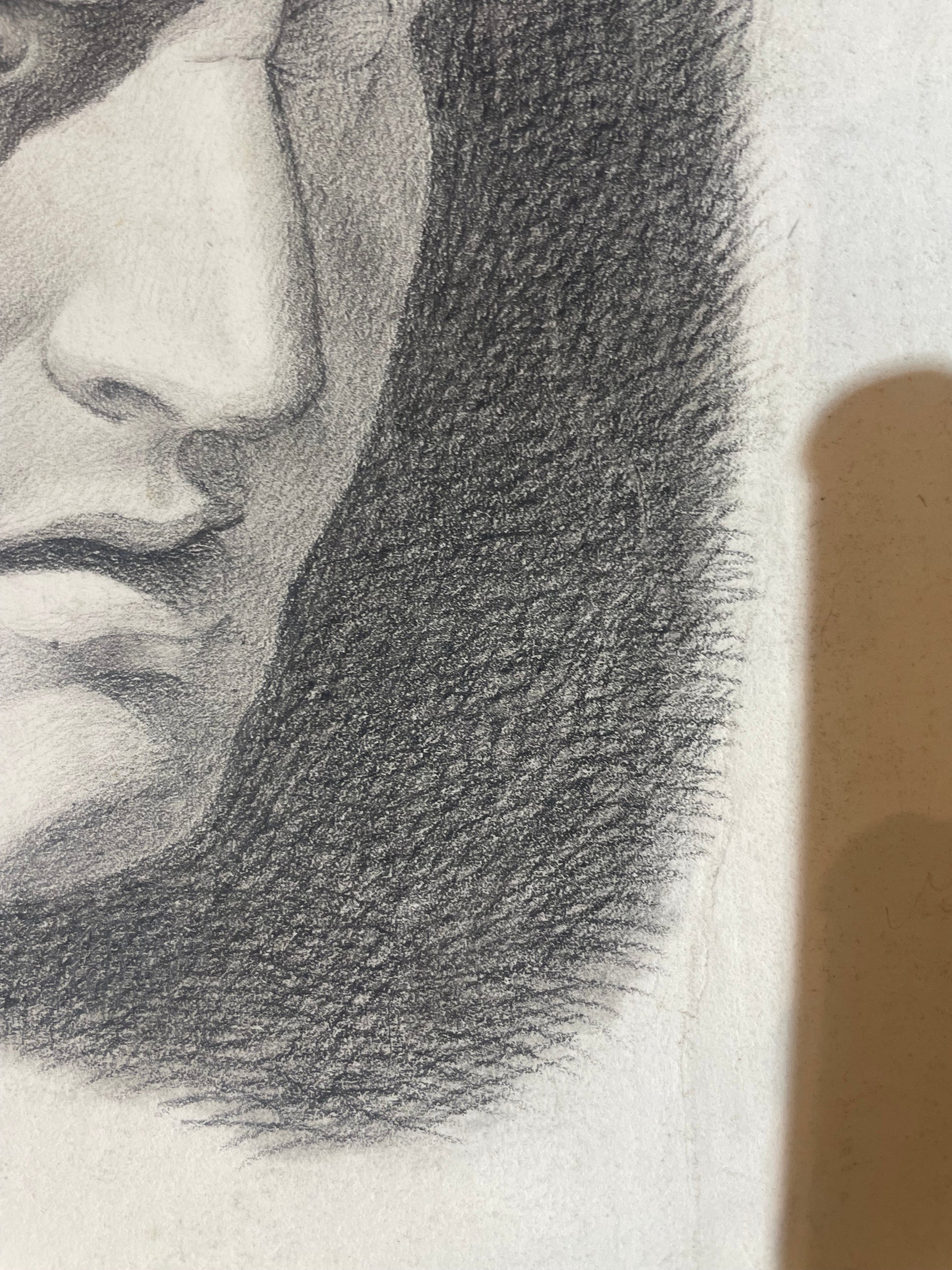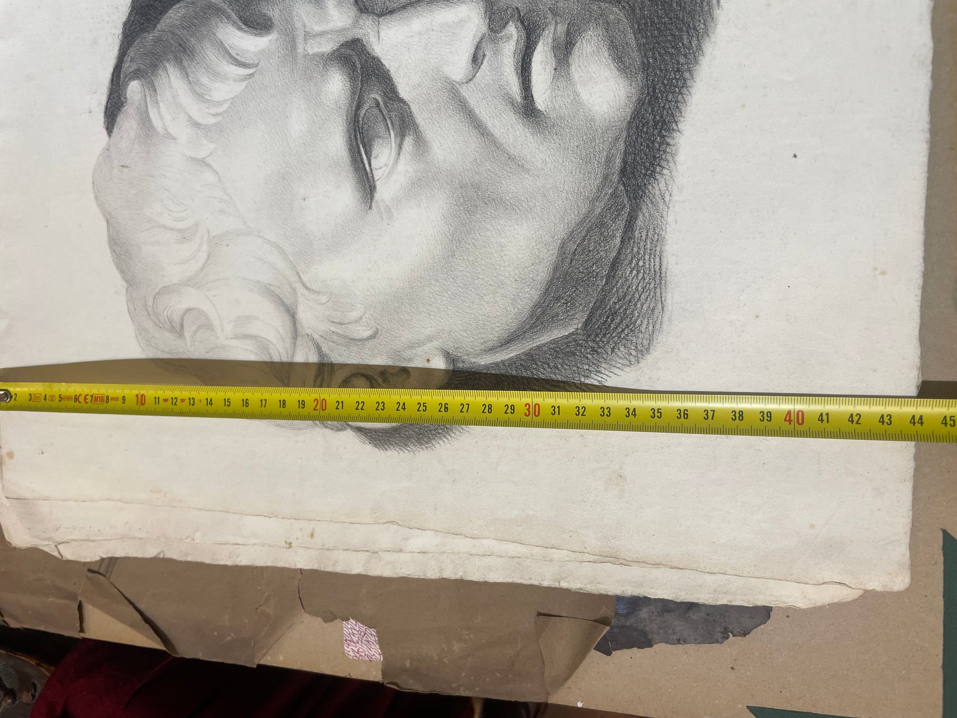 In the 19th century, it was common practice in art academies to copy plaster casts of ancient works. Such exercises formed an essential part of artistic education, helping students to understand proportion and modelling. This sheet documents that practice and the enduring study of classical art in the mid-19th century.
