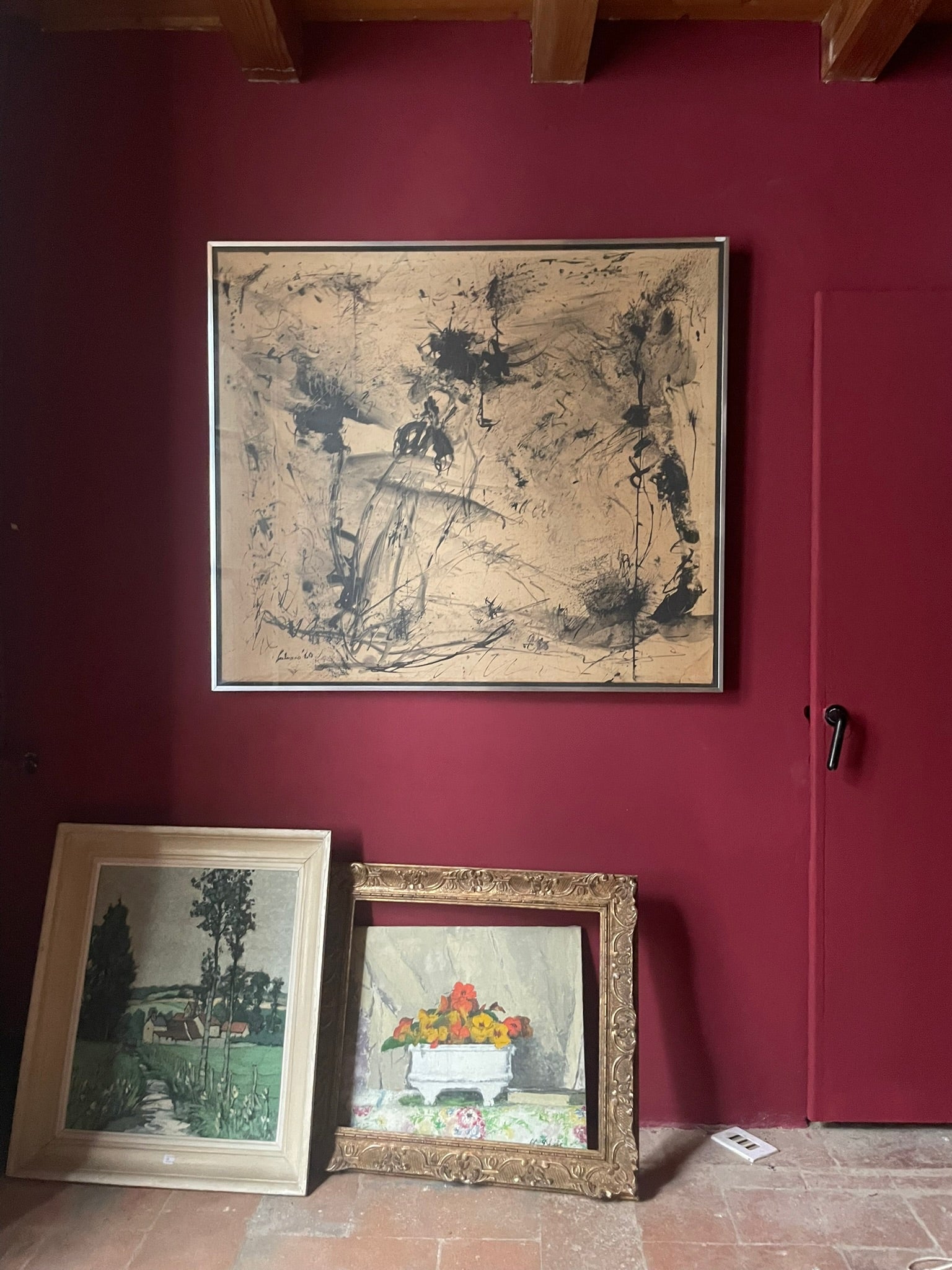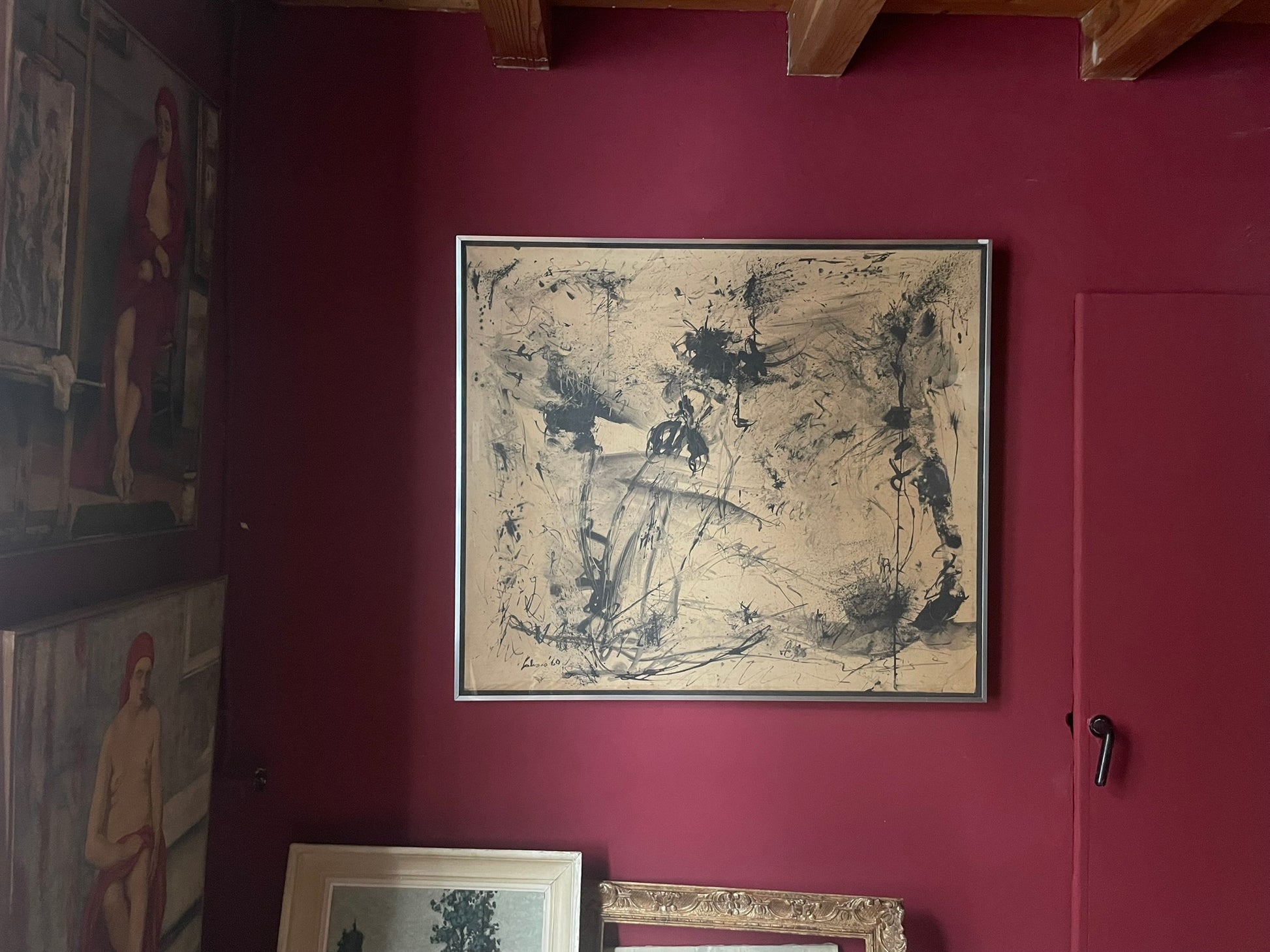 From the late 1950s into the early 1960s, his language shifted towards lyrical abstraction, in dialogue with French Art Informel and American Abstract Expressionism. Works like this reveal an energy close to Hartung or Mathieu, but filtered through a more intimate sensibility, shaped by his dual role as philosopher and critic.