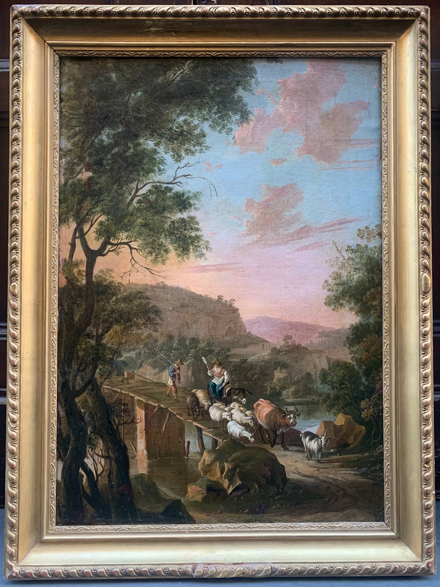 The cow, the goats, the flock of sheep recall the paintings of Beecham, another Dutchman active in Italy in the 17th century who contributed to the creation of the pictorial movement that blends Nordic naturalism with an idealized vision of the Lazio or Roman countryside. The painting is in a good state of conservation.
