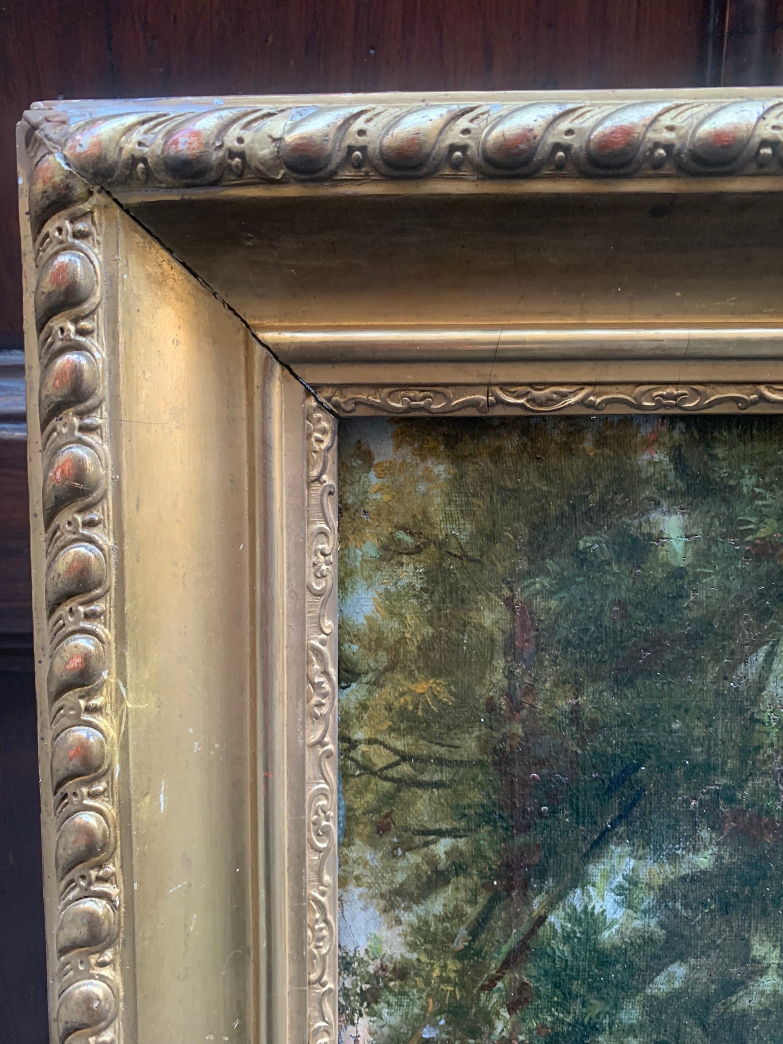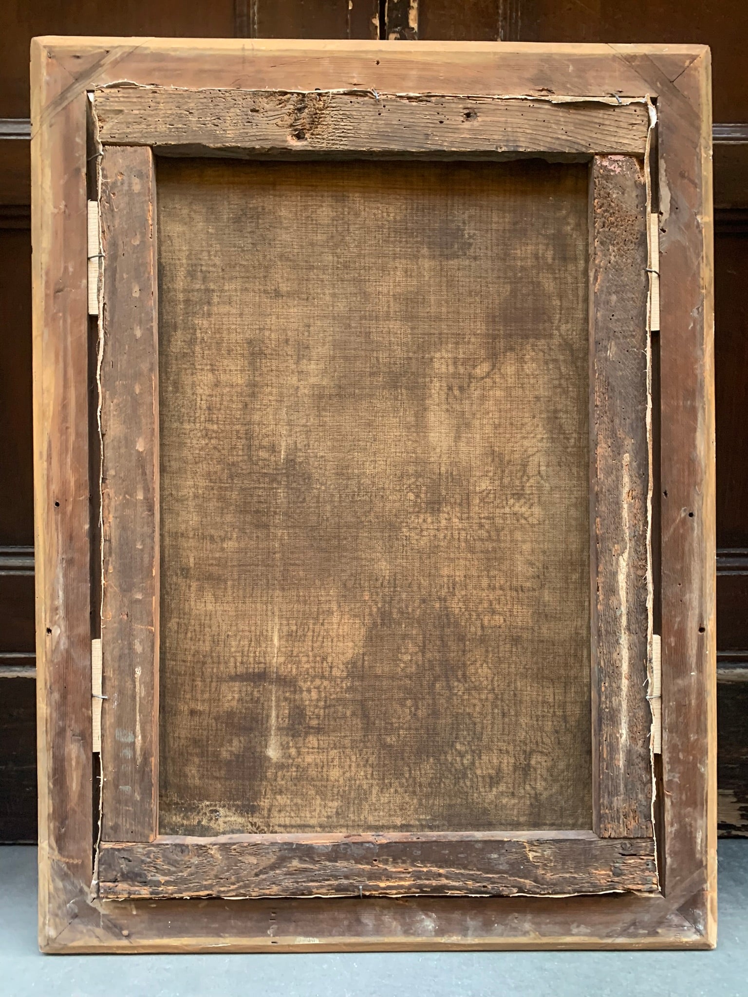 It has a carved and gilded wooden and stucco frame from the early 19th century.
