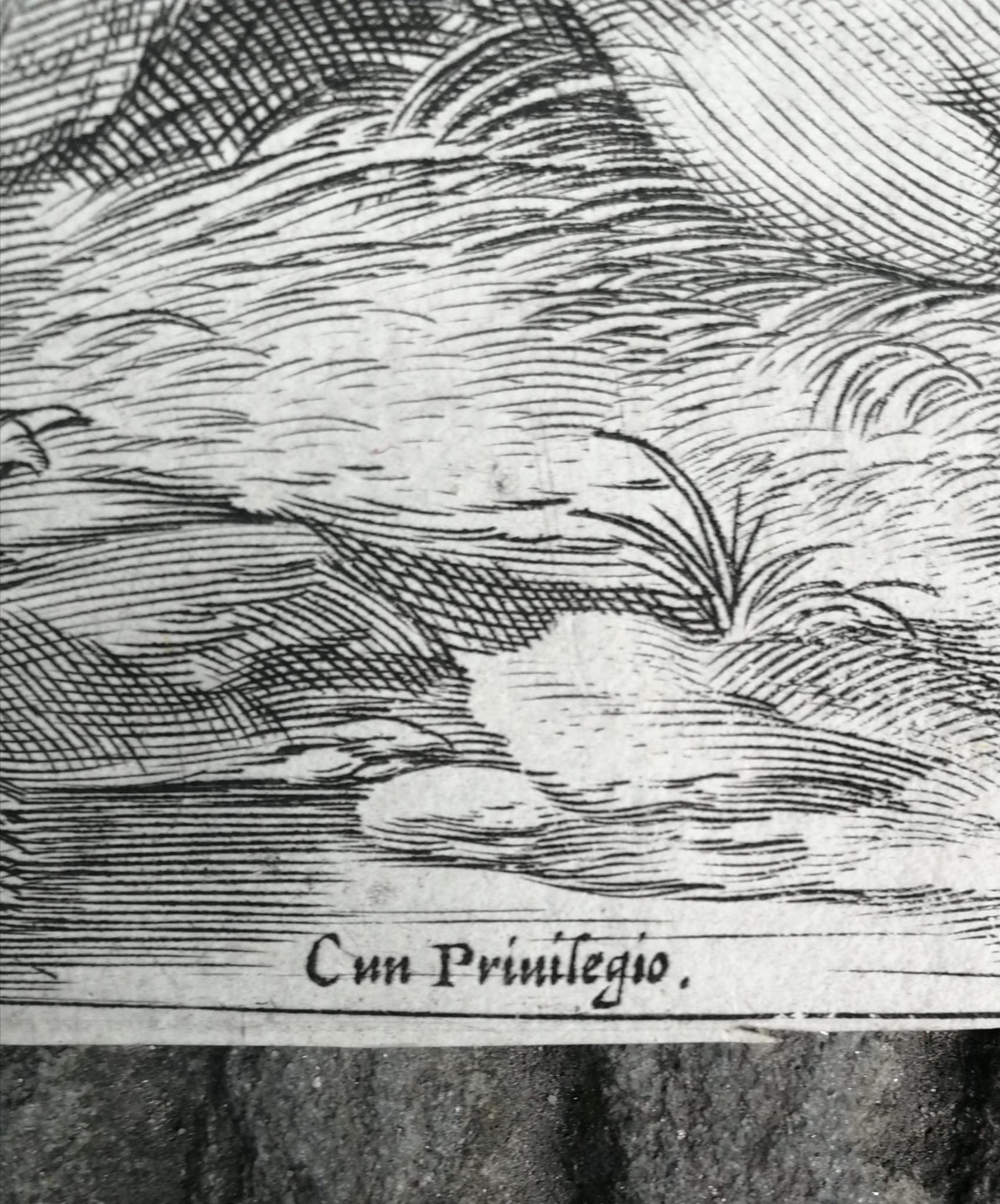 The inscription Cum Privilegio on the sheet is the visible proof of this system, acting as an early form of copyright and confirming the authenticity and antiquity of the print.