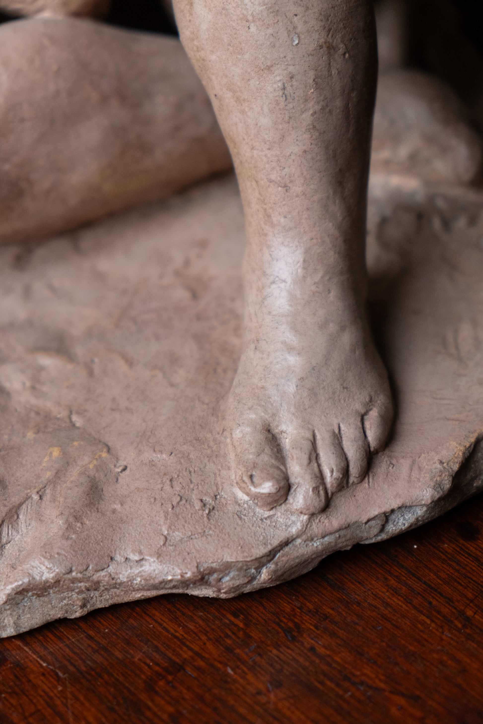 Giorgio Rossi (1894–1981) was an Italian sculptor whose work combines meditative realism with archaic influences, fitting into the Tuscan figurative tradition of the early 20th century. His training at the Academy of Fine Arts in Florence under the guidance of master Antonio Bortone allowed him to develop a style characterized by intense formal research and a modern sensibility, where affinities with the poetics of Libero Andreotti (Pescia, 1875 – Florence, 1933) can be recognized. Rossi’s works, often created in terracotta and alabaster, express a strong expressive charge, accentuated by a sober and essential language.