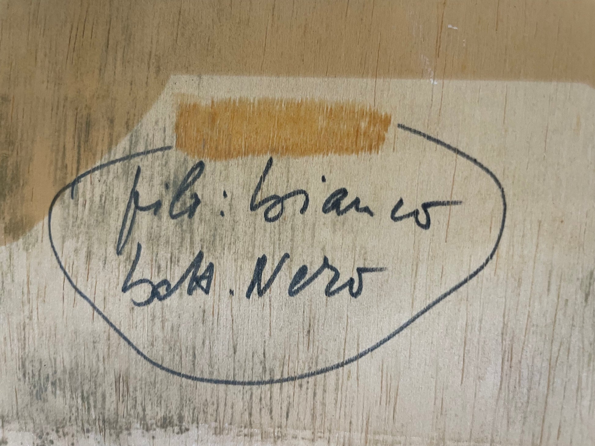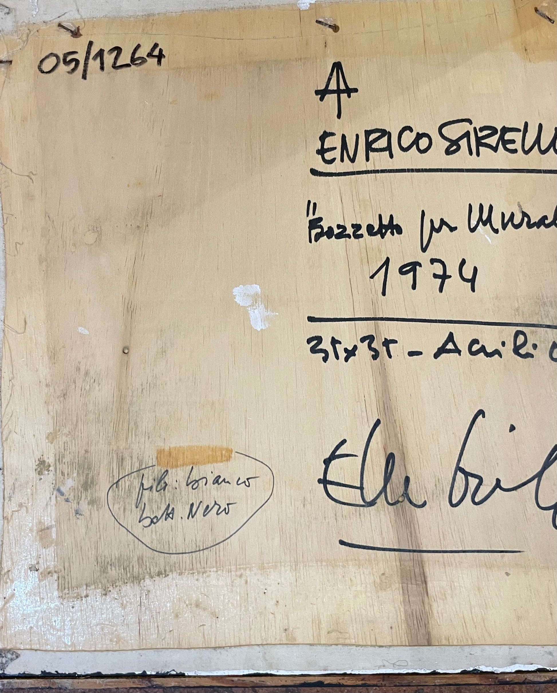 Questo dipinto di Enrico Sirello (Livorno, 1930–2012) , realizzato nel 1975, appartiene alla fase matura della ricerca dell'artista sugli effetti anisotropici nella pittura astratta, un concetto al centro dei suoi esperimenti visivi degli anni Settanta.