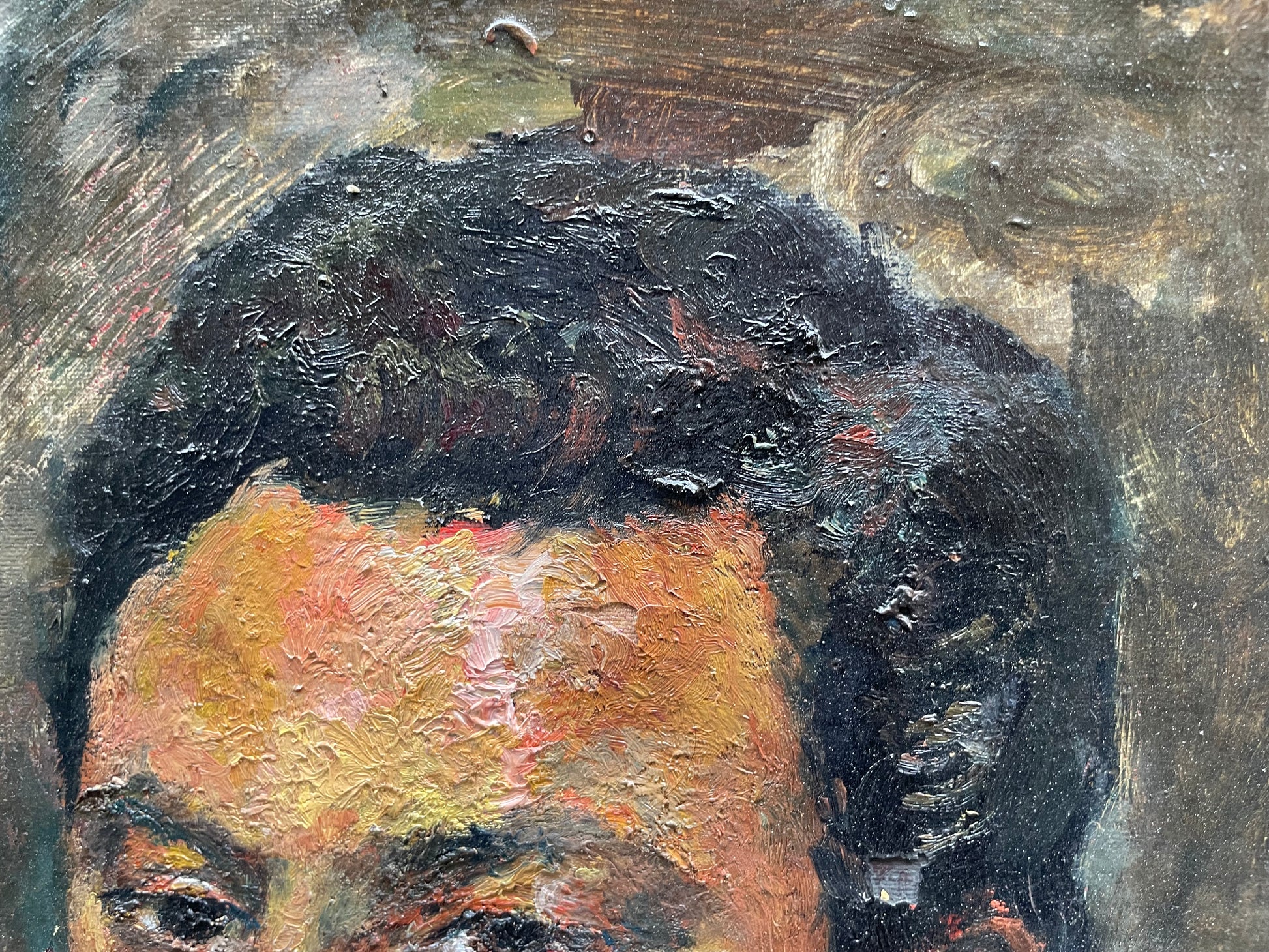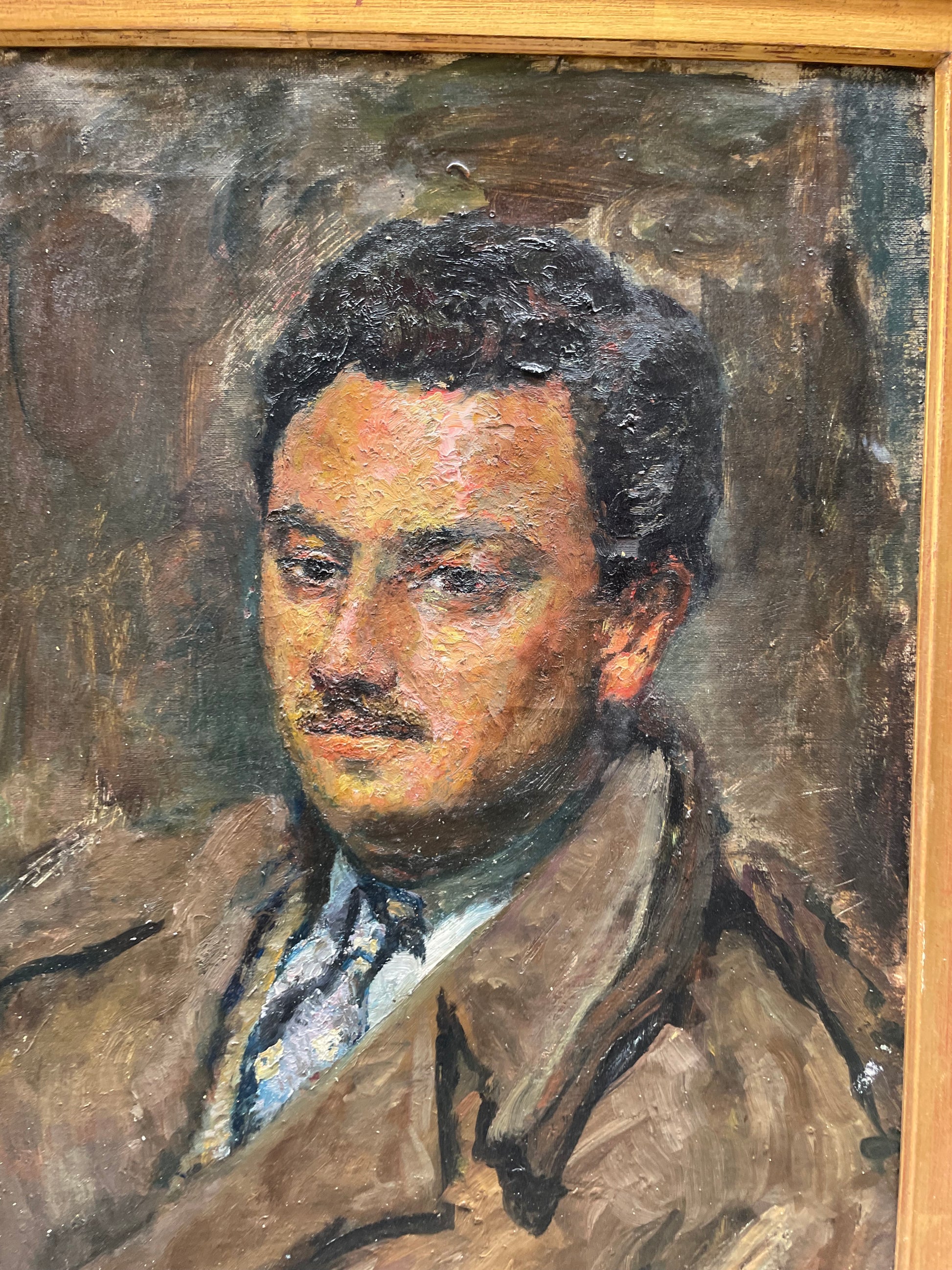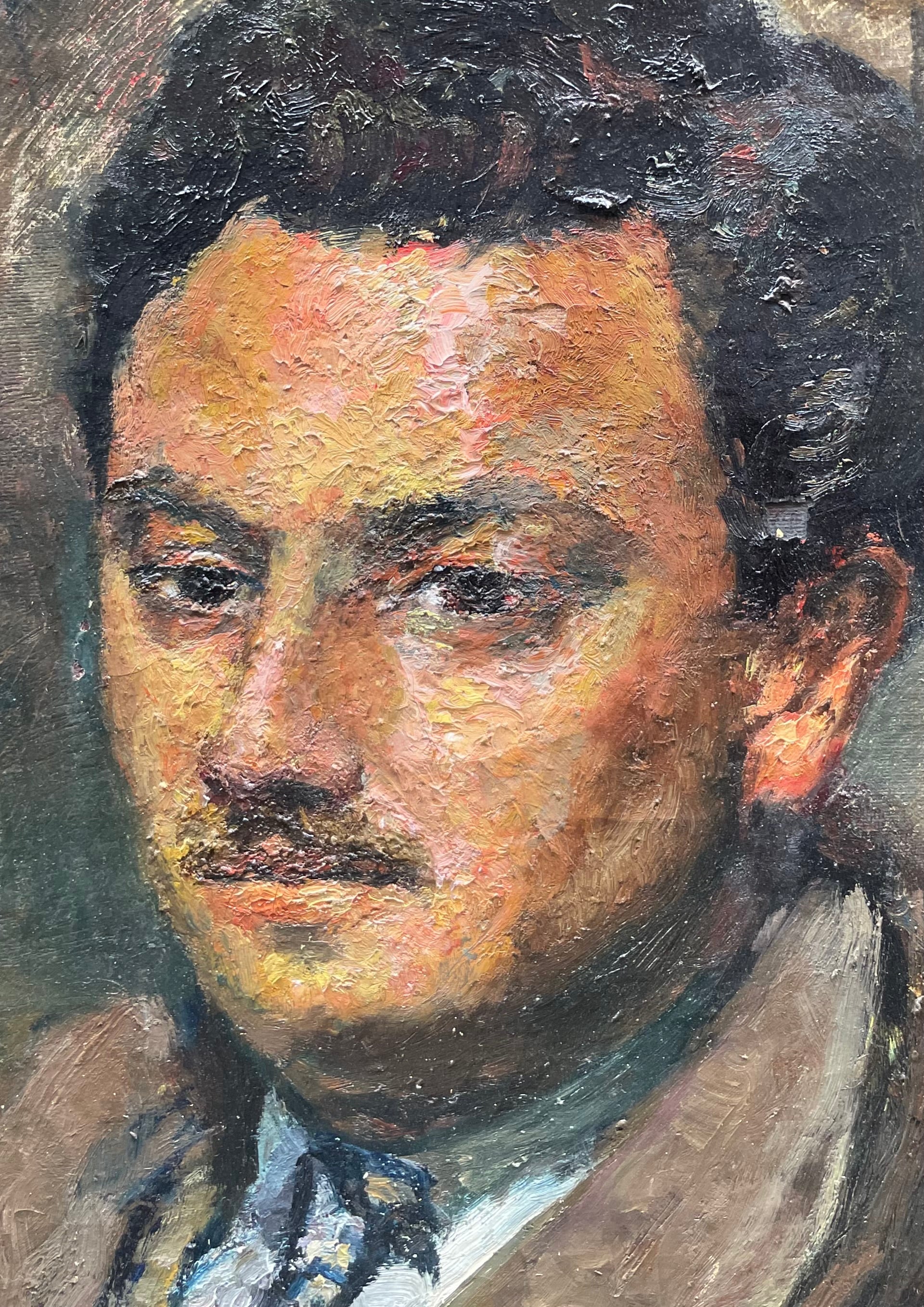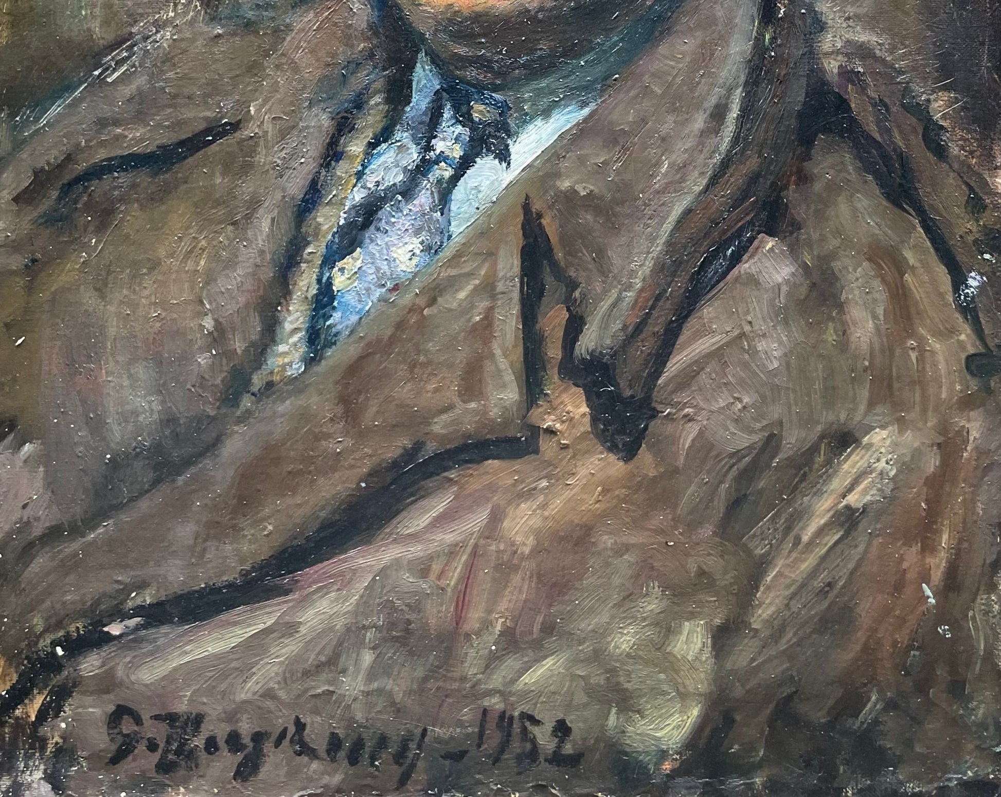 This 1952 portrait demonstrates his virtuosity: dense brushstrokes form a symphony of boldly juxtaposed colors, capturing both vitality and psychological depth. The brown coat and blue tie are rendered with energetic strokes, while the neutral background enhances the sitter’s individuality. Up close, the overlapping brushwork reveals warm chromatic layers modeling flesh and shadows with vibrancy.