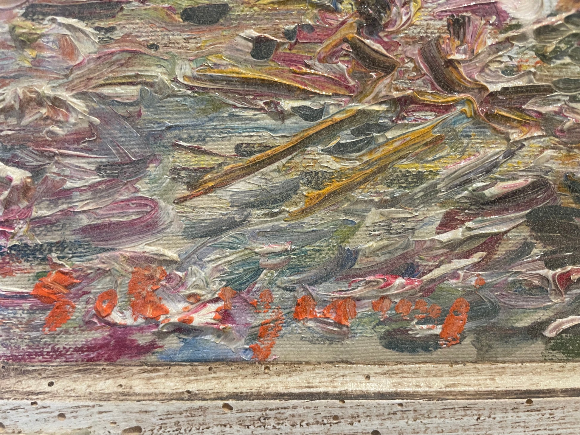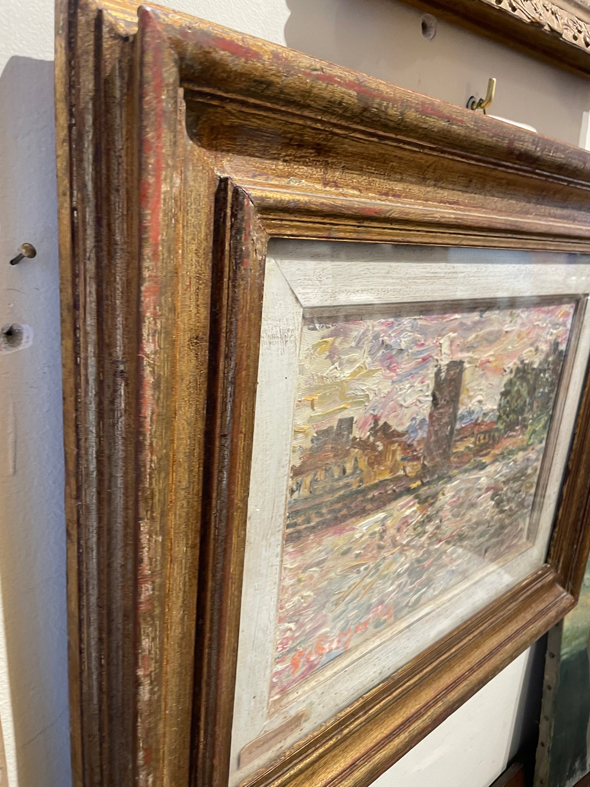 View of the Arno River with the Torrino di Santa Rosa, one of the best-preserved sections of Florence’s medieval walls, most of which were demolished in the 19th century when the city became the capital of the Kingdom of Italy. The painting, built up through dense, broken brushstrokes, reveals Borgianni’s unmistakable technique: thick layers of colour vibrating with light, capturing the shifting reflections of the river and rooftops to create a living, poetic image of the city.