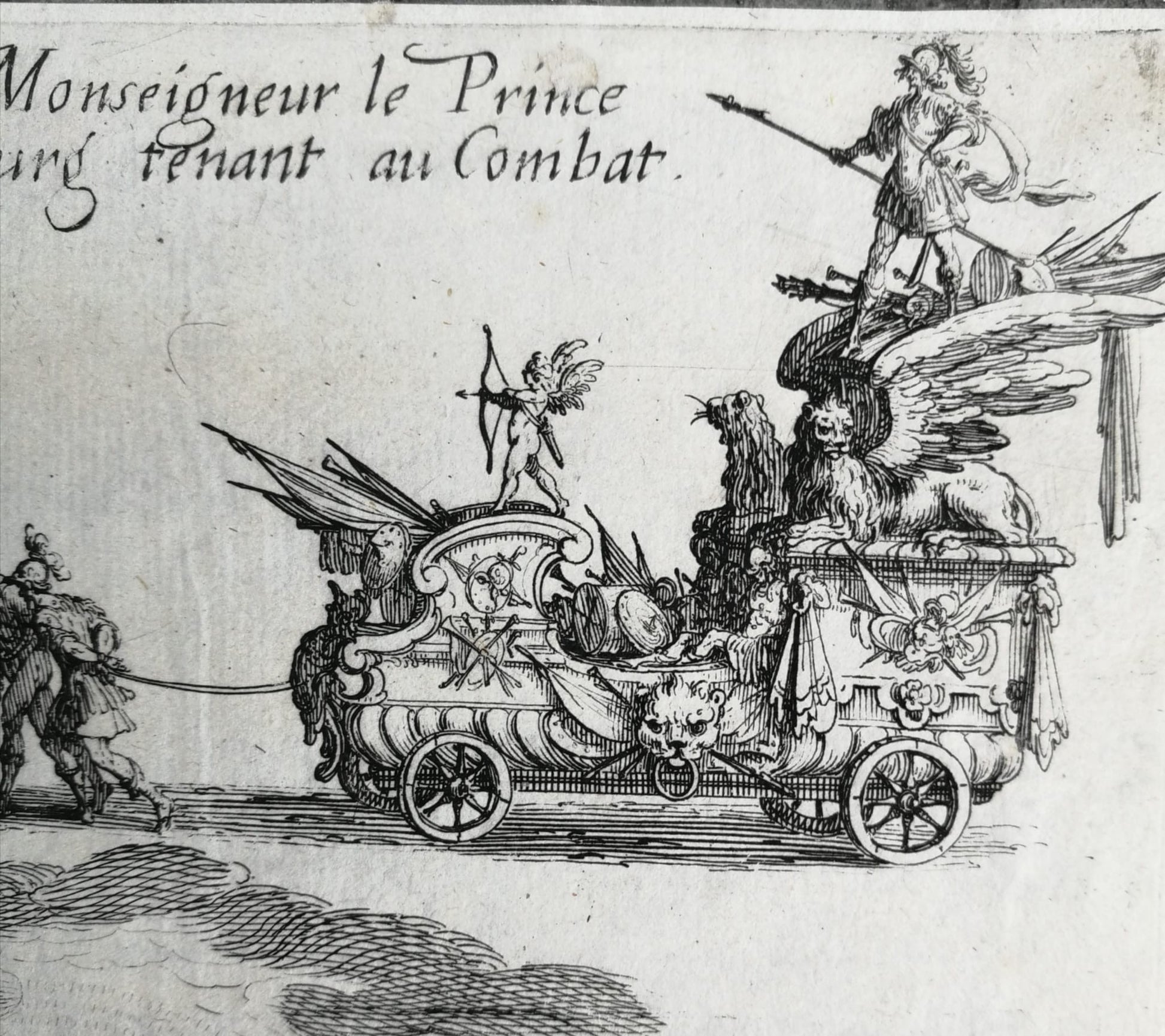 The event combined theatre, allegory, and tournament. Known as the Combat à la Barrière, it unfolded as a lavish sequence of triumphal entries and mock battles. Each courtier appeared on an elaborate allegorical chariot, impersonating mythological or symbolic figures. Contemporary descriptions mention courtiers dressed as Jason or “Pirandre,” while the Duke himself appeared in the role of the Sun. The Prince of Pfaltzbourg, Louis de Lorraine, made his entry surrounded by soldiers, musicians, torches, and winged figures — a true explosion of Baroque fantasy.