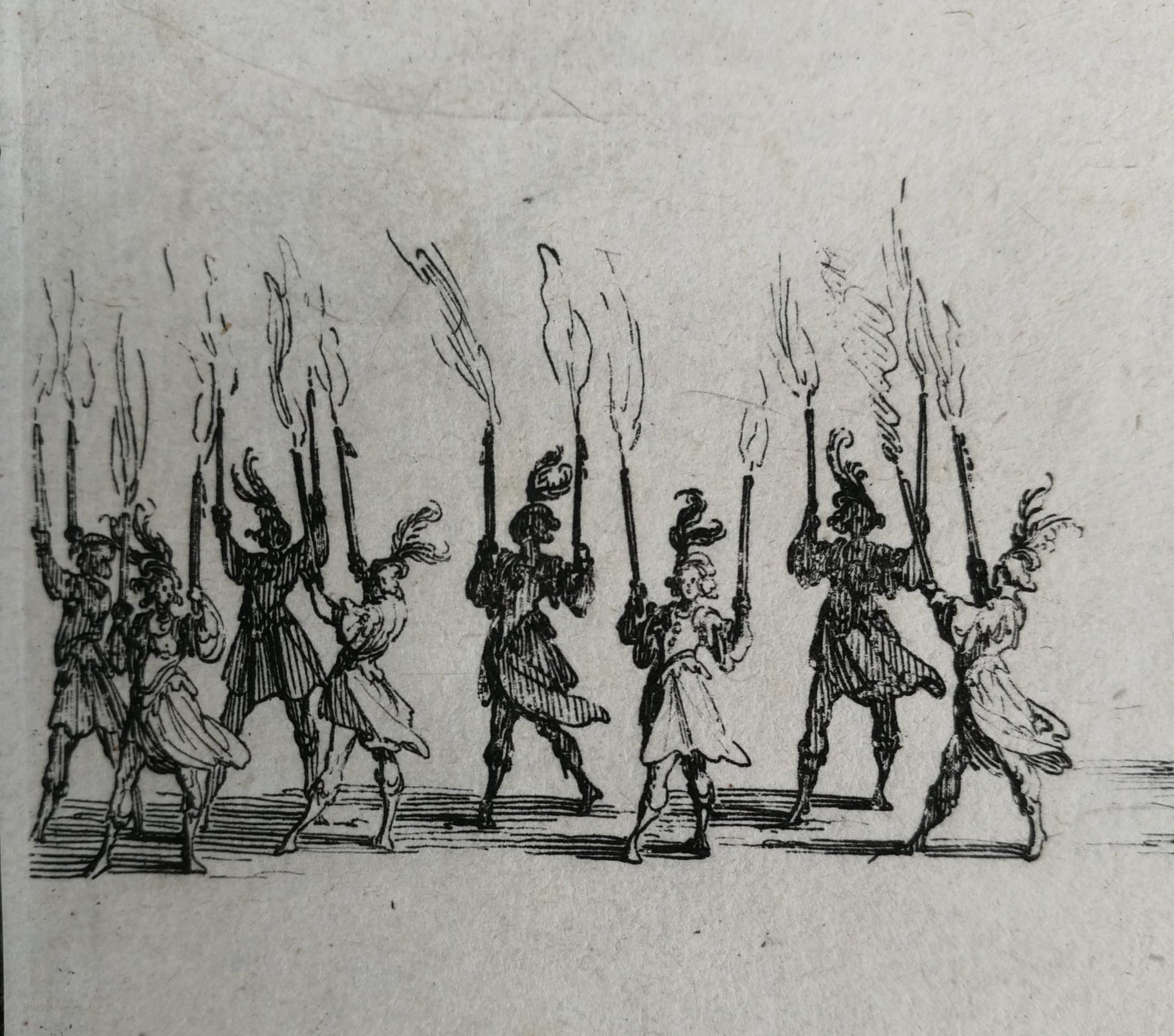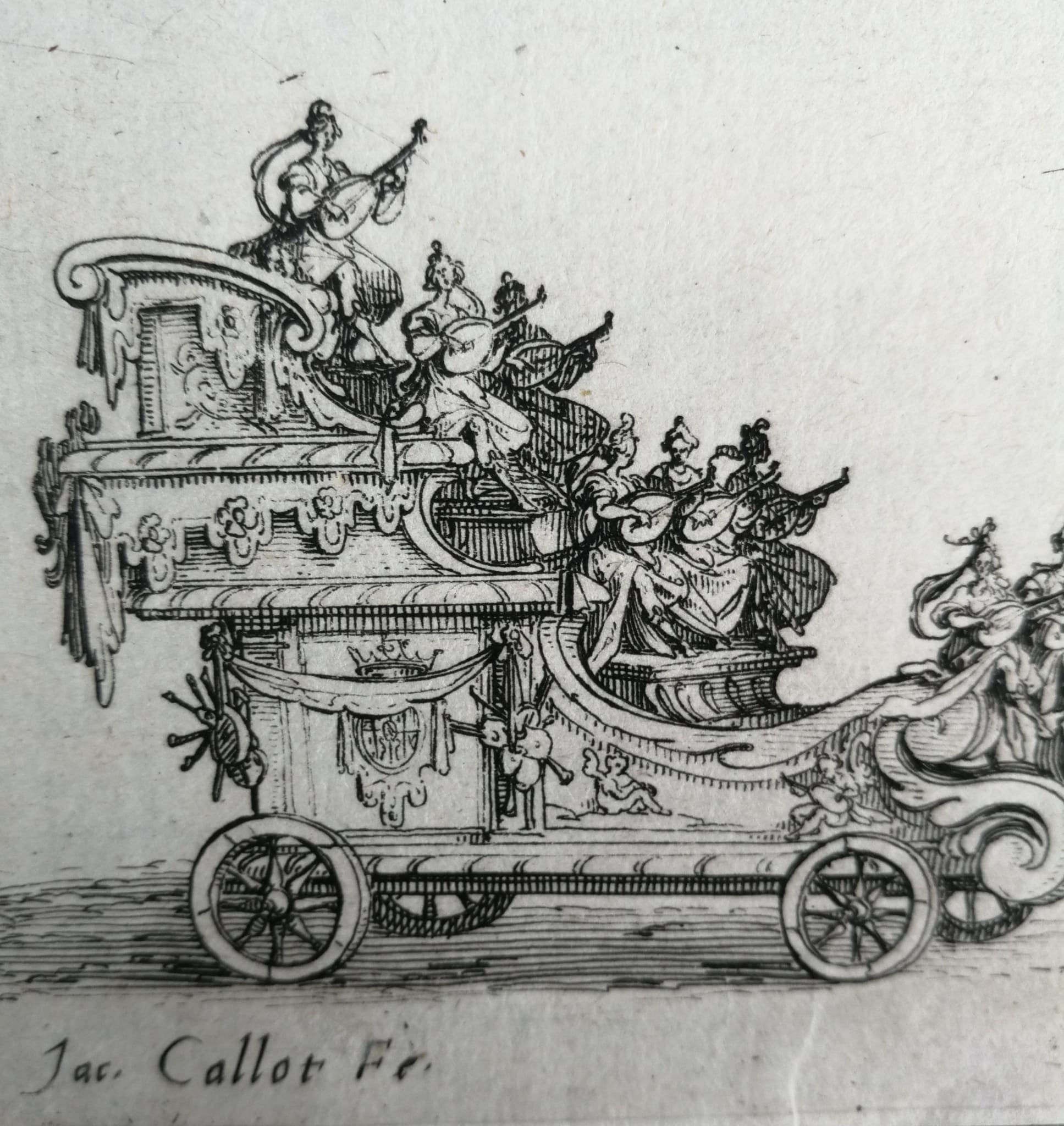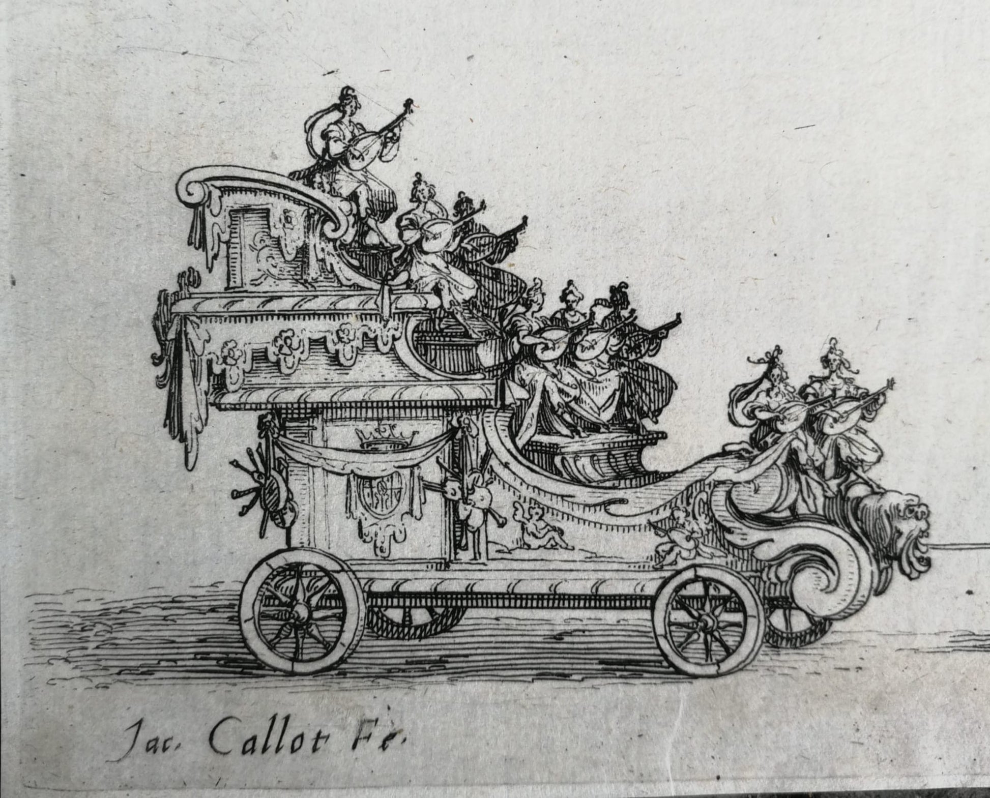 XVII century original Engraving by Jacques Callot (1592–1635), recording one of the most dazzling court spectacles of the seventeenth century. On 14 February 1627, Duke Charles IV of Lorraine staged in Nancy a magnificent pageant in honor of his favorite, the Duchesse de Chevreuse.
