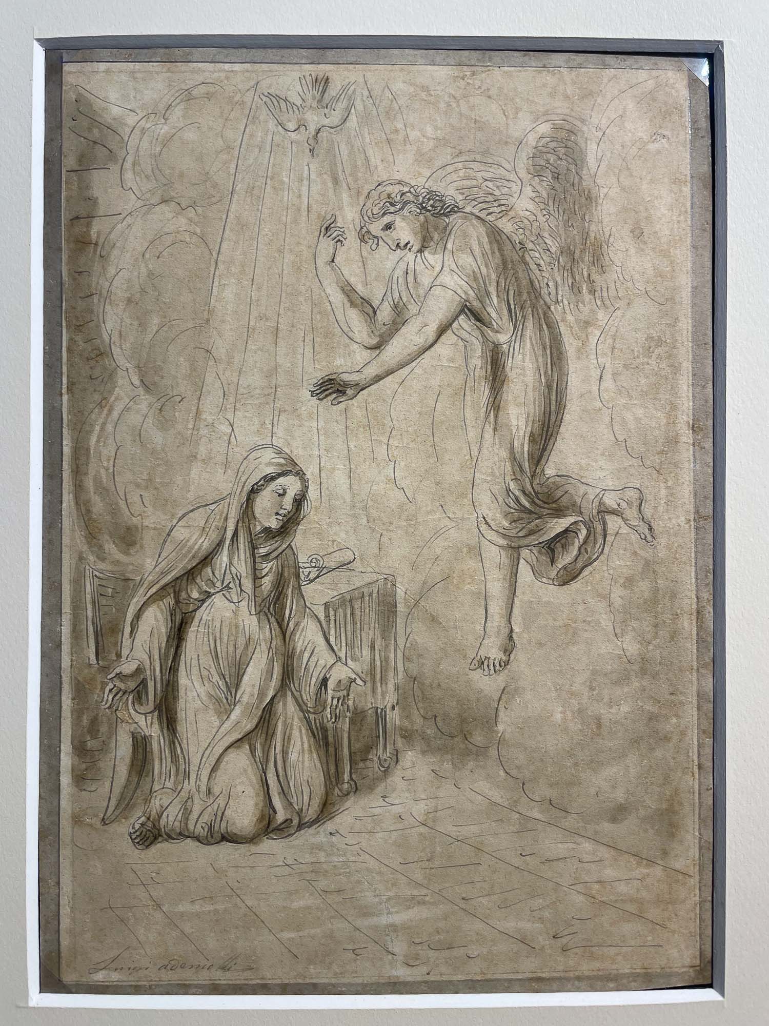 Luigi Ademollo, Annunciazione, inchiostro e grafite su carta, firmato, 1843