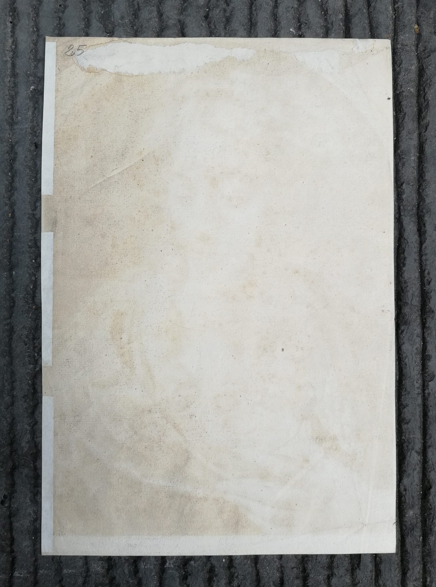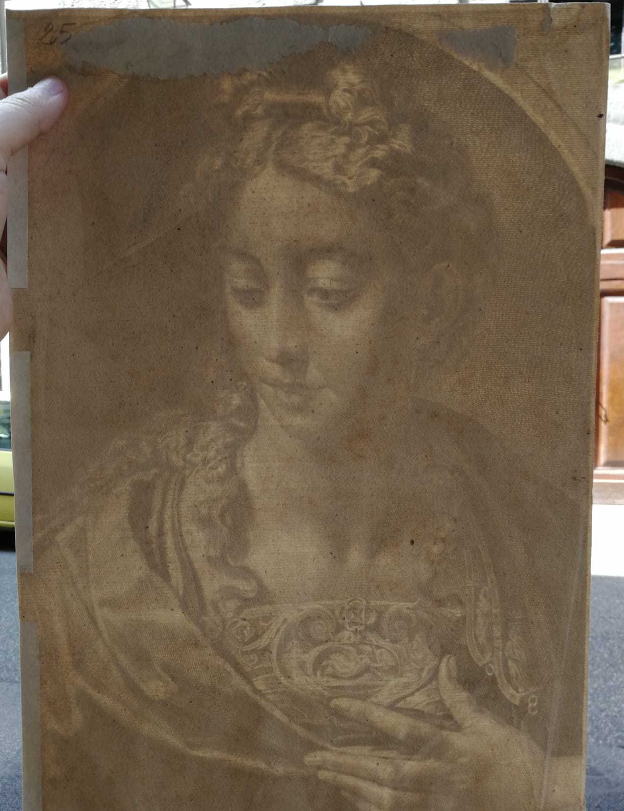 The present impression measures about 38 × 26 cm, on laid antique paper, bearing only Cornelis Visscher’s signature. The freshness of the line, sharp and little worn, suggests the second state (17th century); the more compact paper, however, may place it in the early 18th century (fourth state). In both cases, it is an early impression taken from the original plate engraved in 1658.