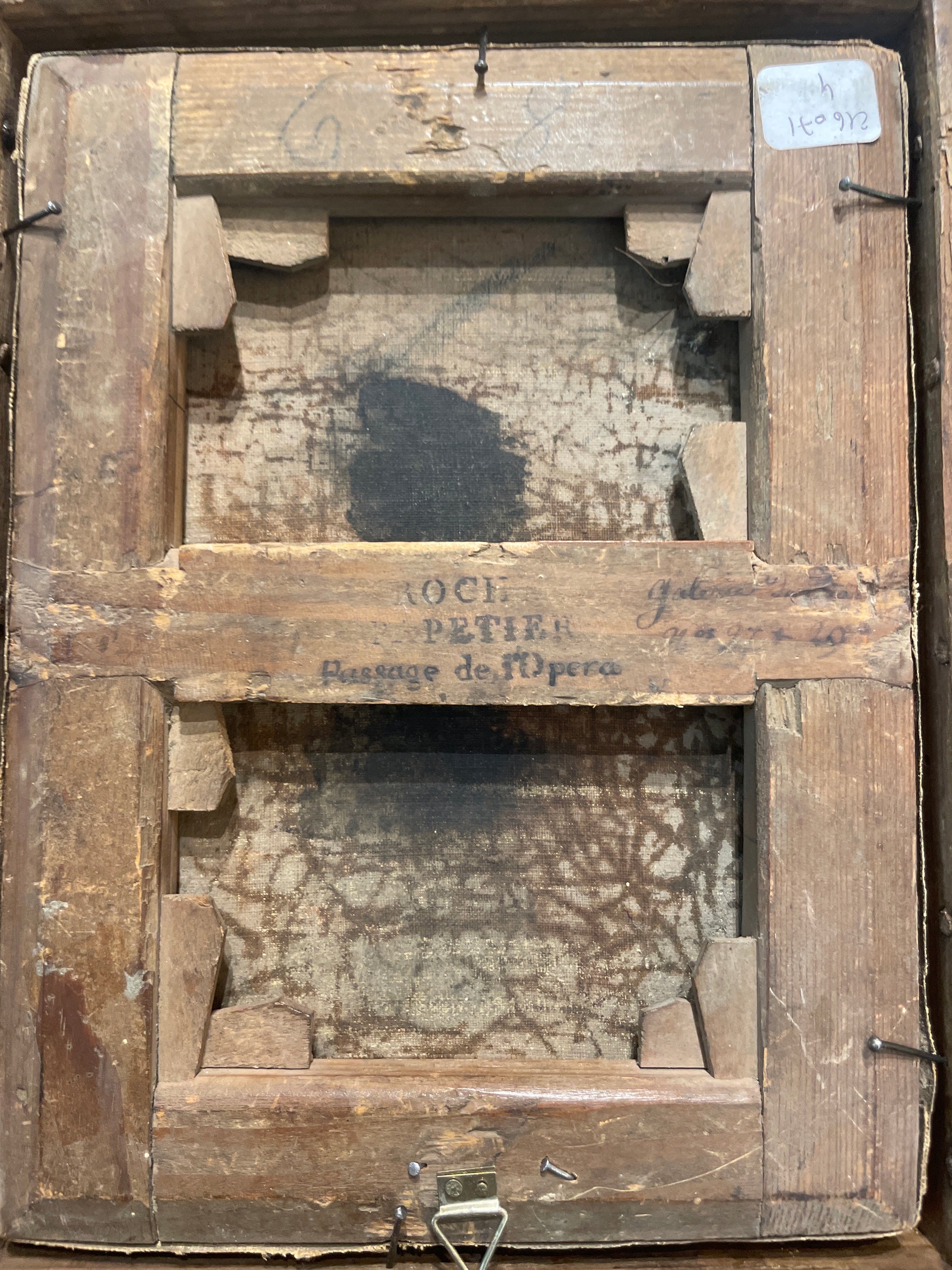The stretcher bears the stamp of Roch Petit, Passage de l’Opéra, a Parisian supplier active in the 1820s. This stamp links the work directly to the Parisian milieu in which Leprince himself worked, with an atelier in rue Childebert, before he eventually settled in Chartres. The combination of signature, period, and provenance situates this portrait firmly within his most active years, offering a rare example of his portraiture.