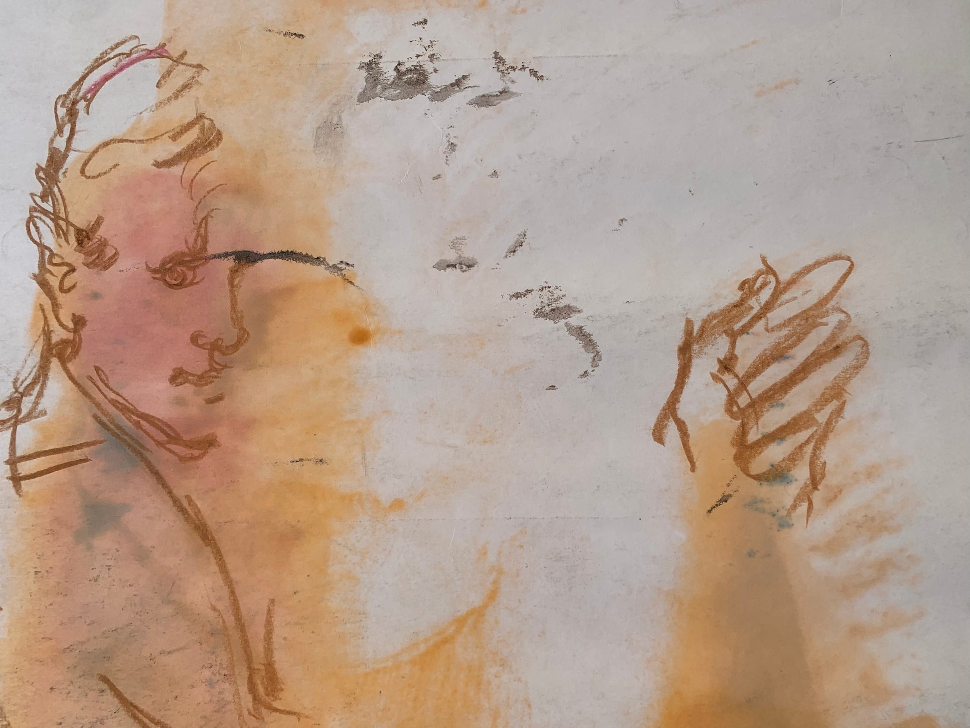 Defects on paper, due to humidity and dust.