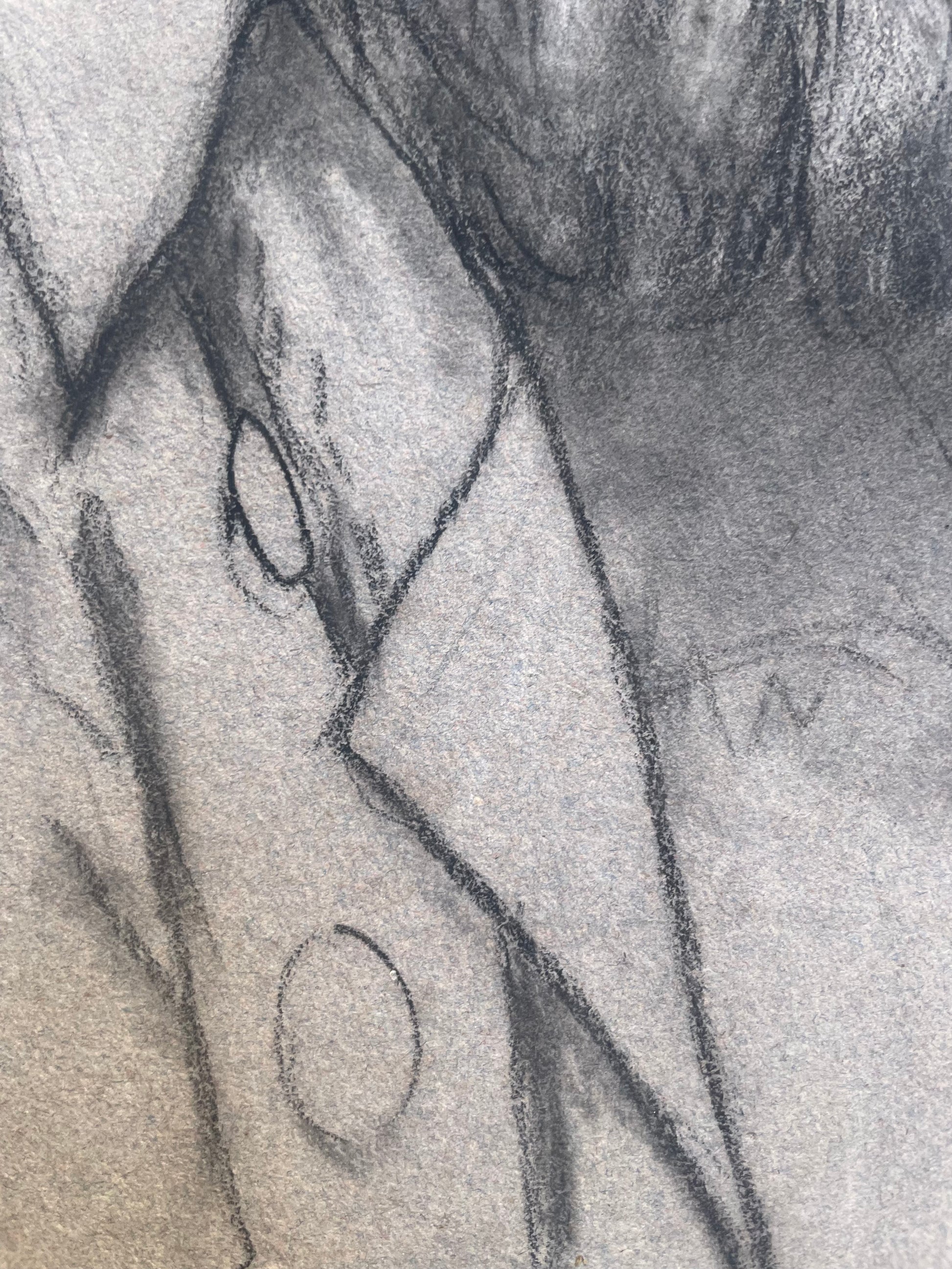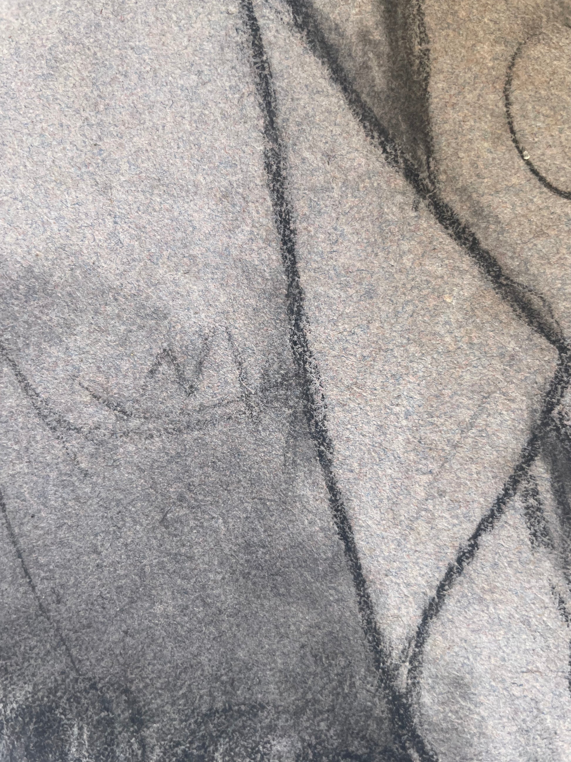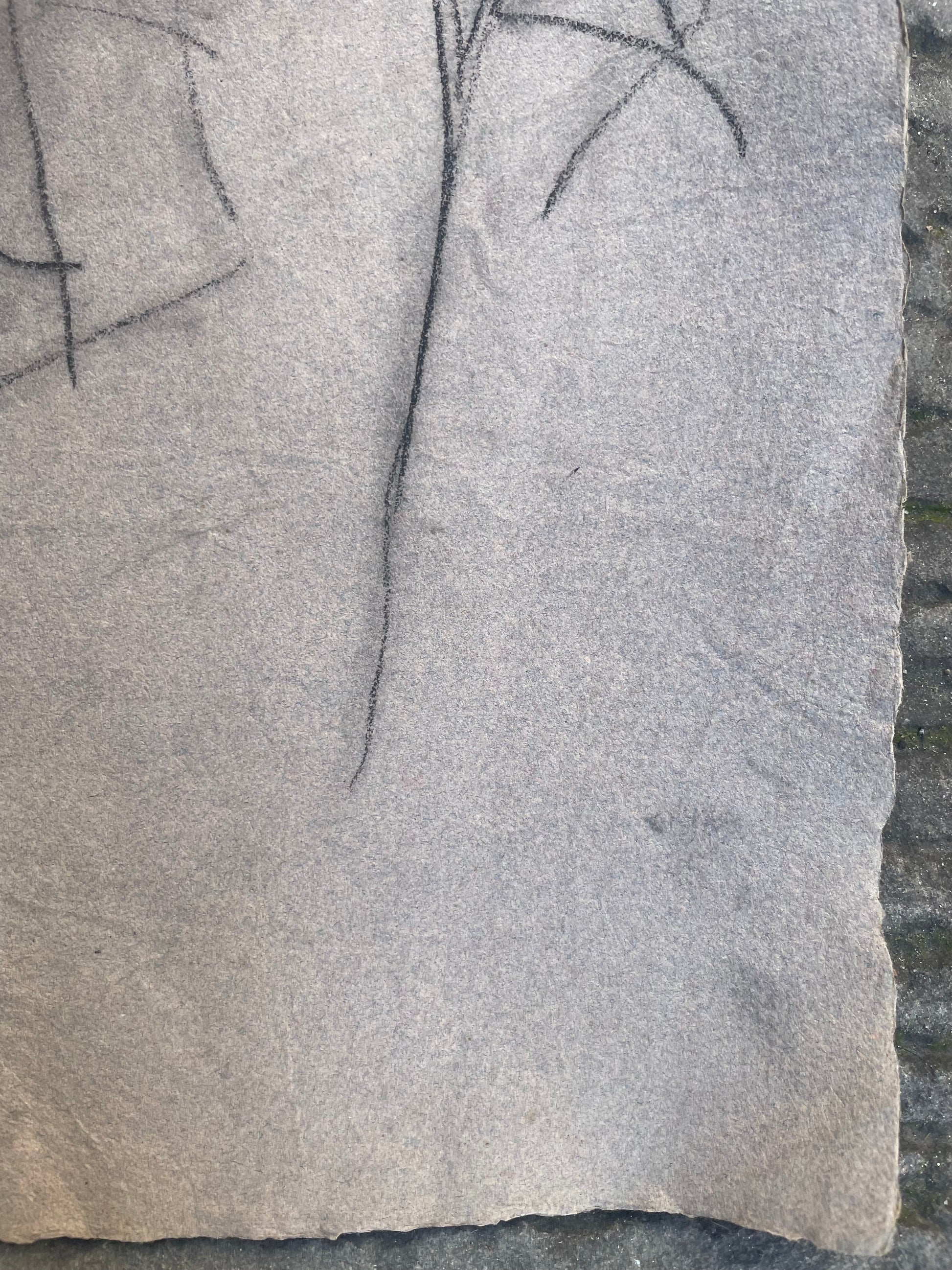 Carboncino su carta grigia antica, carta di stracci fatta a mano