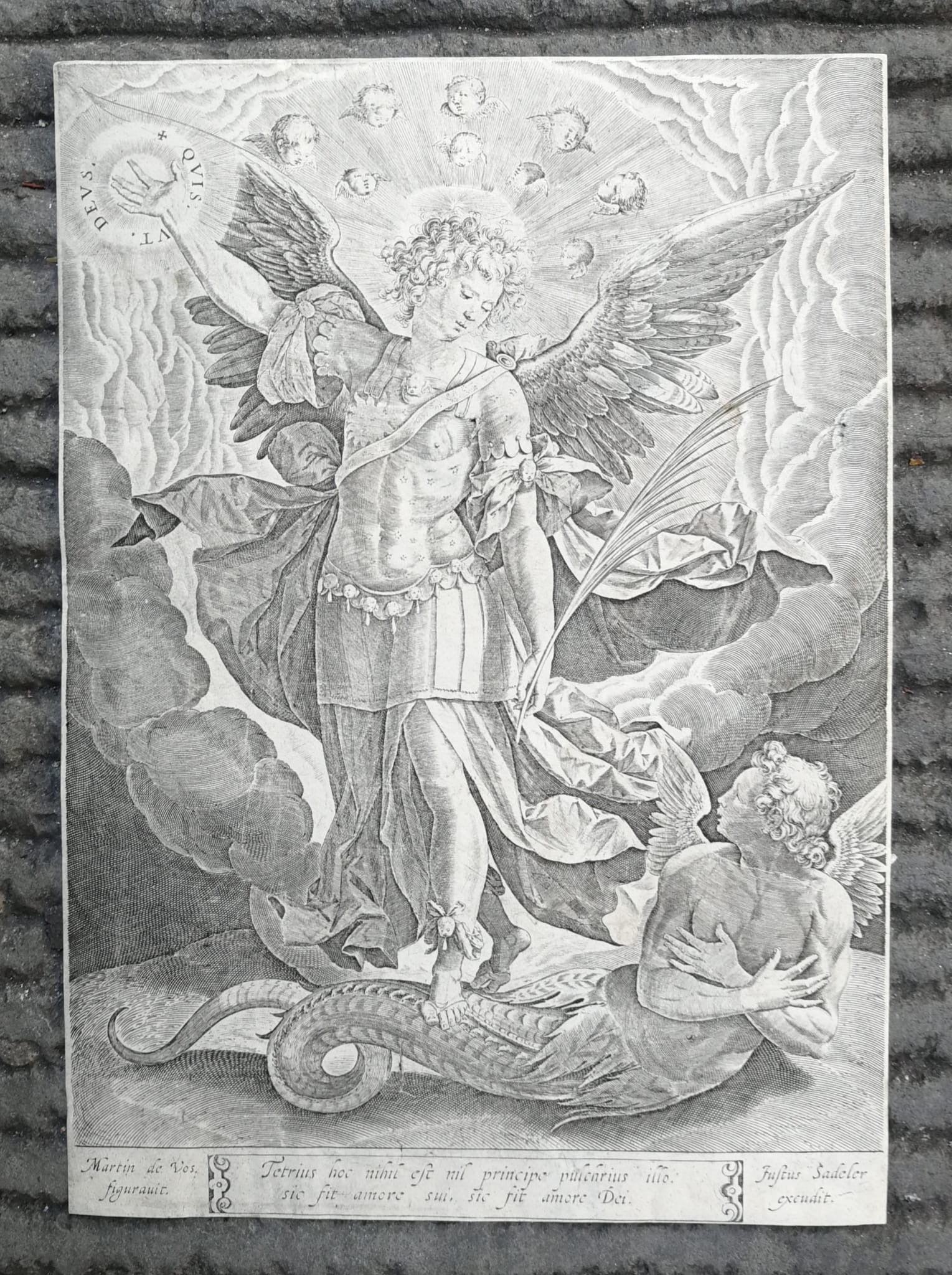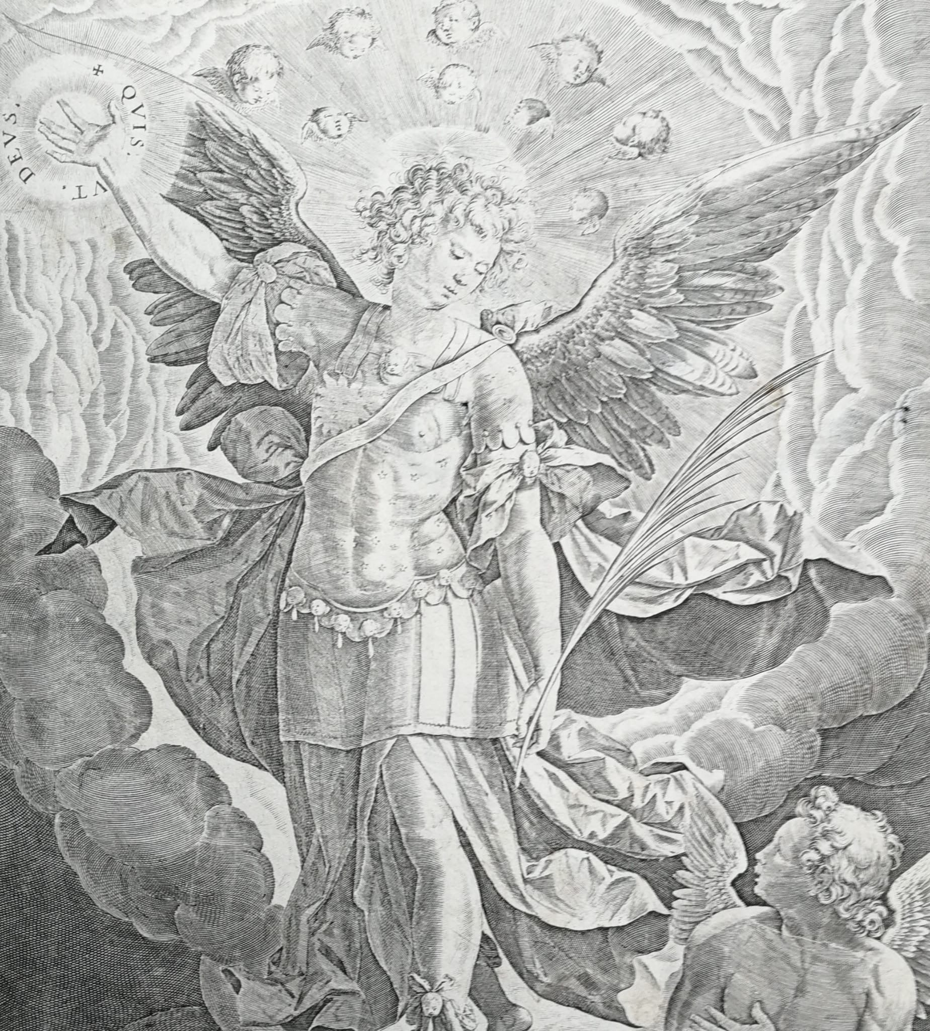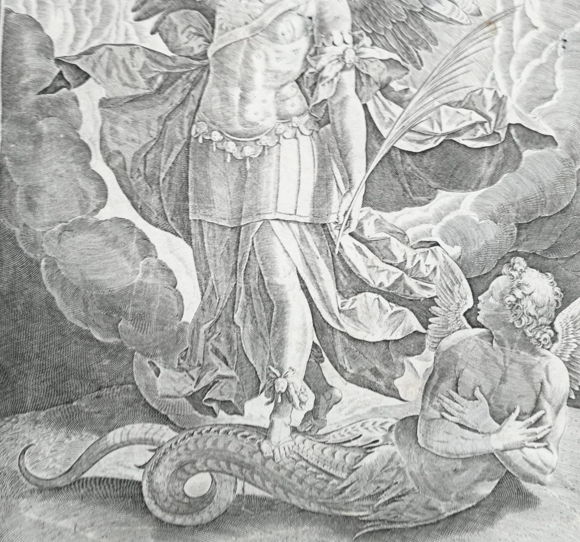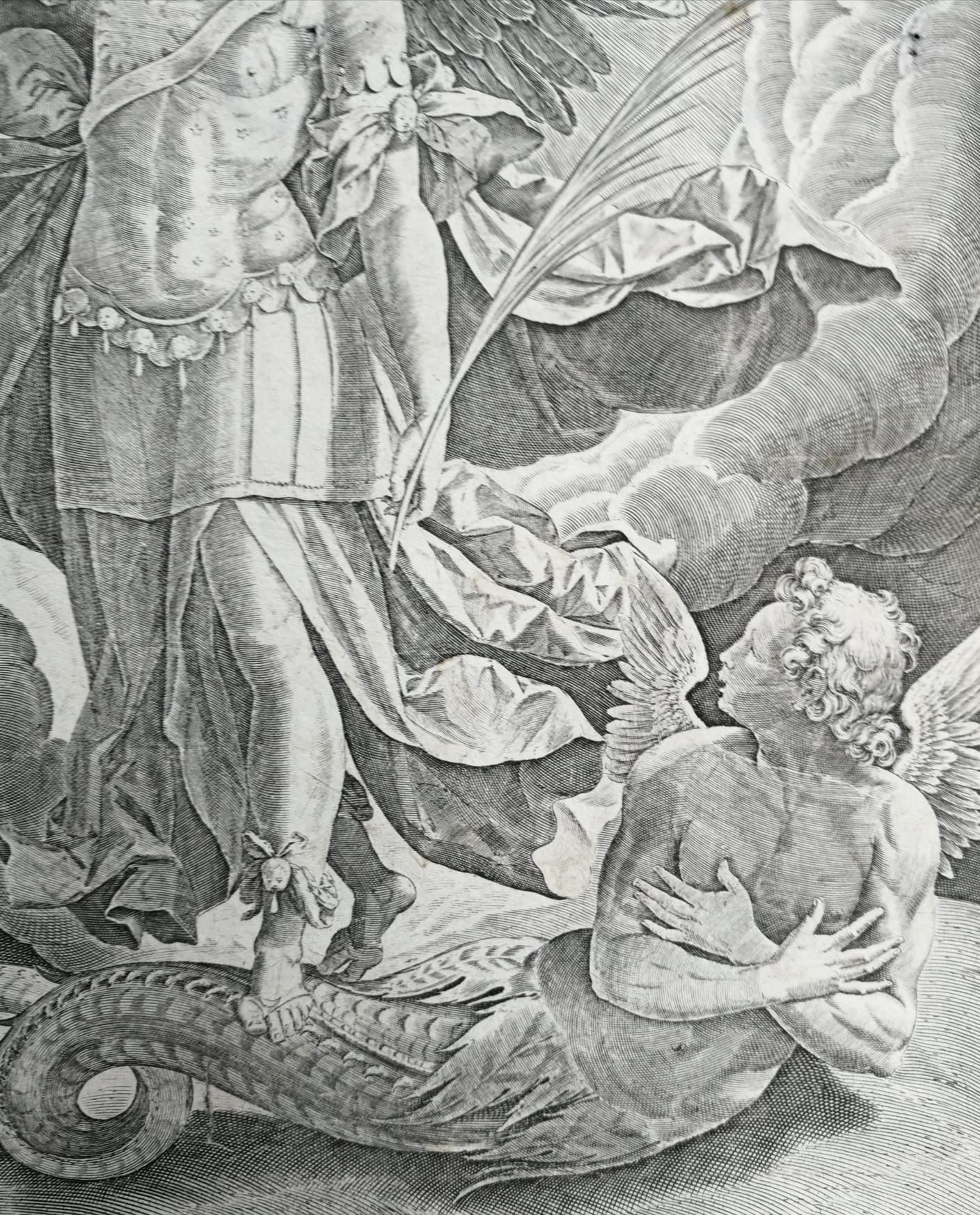 Sadeler Engraving after Maarten de Vos – Saint Michael and the Dragon, 16th C.
