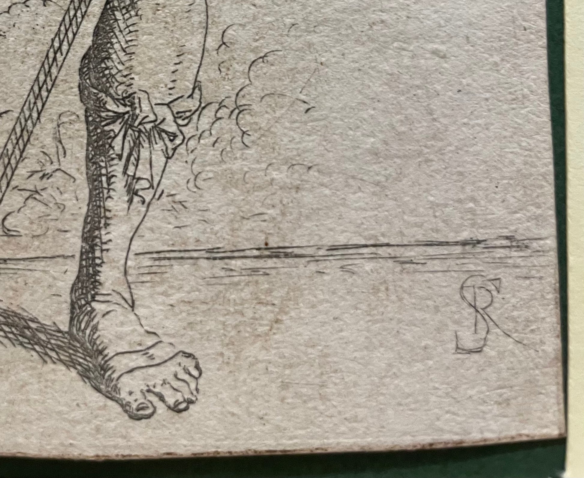 The clarity of the stroke, the fully legible monogram, and the absence of plate wear confirm that this example corresponds to the second (final) state, printed from the original plate. Later 18th-century impressions, by contrast, appear lighter in tone and show worn lines on thinner paper.