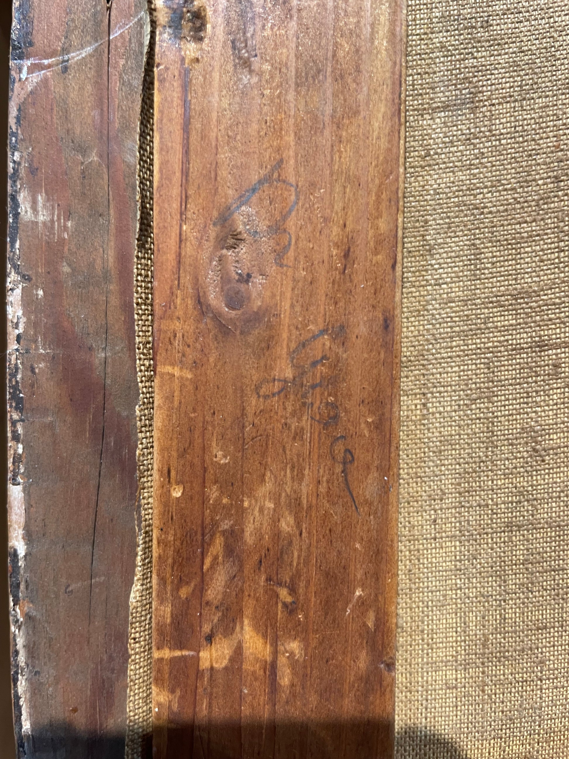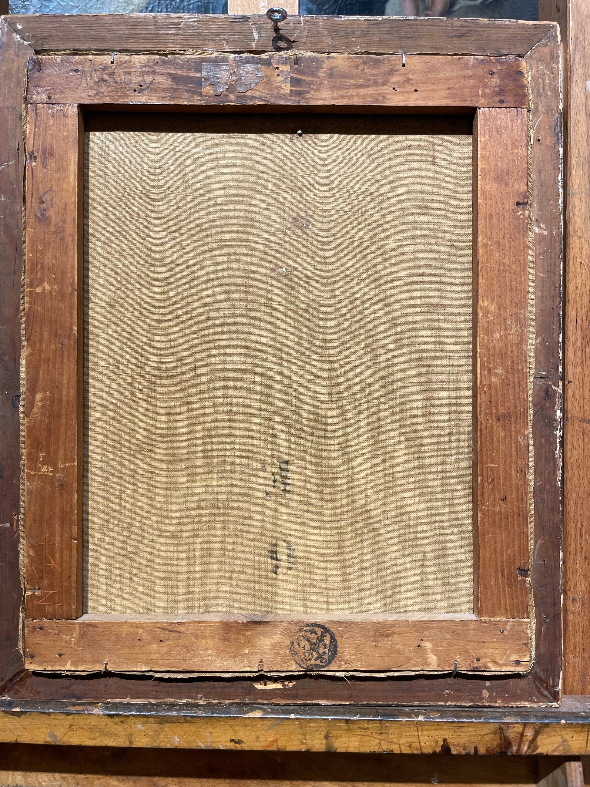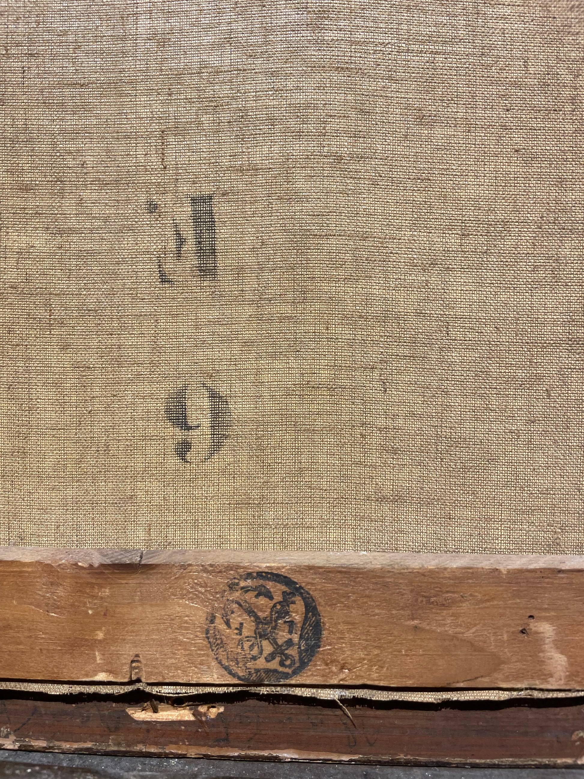 Firma parzialmente leggibile in basso a sinistra con datazione probabilmente 1929. Sul retro sono presenti etichetta e numero sul telaio; la tela appare riconducibile a una fornitura parigina (tipo Bourgeois).