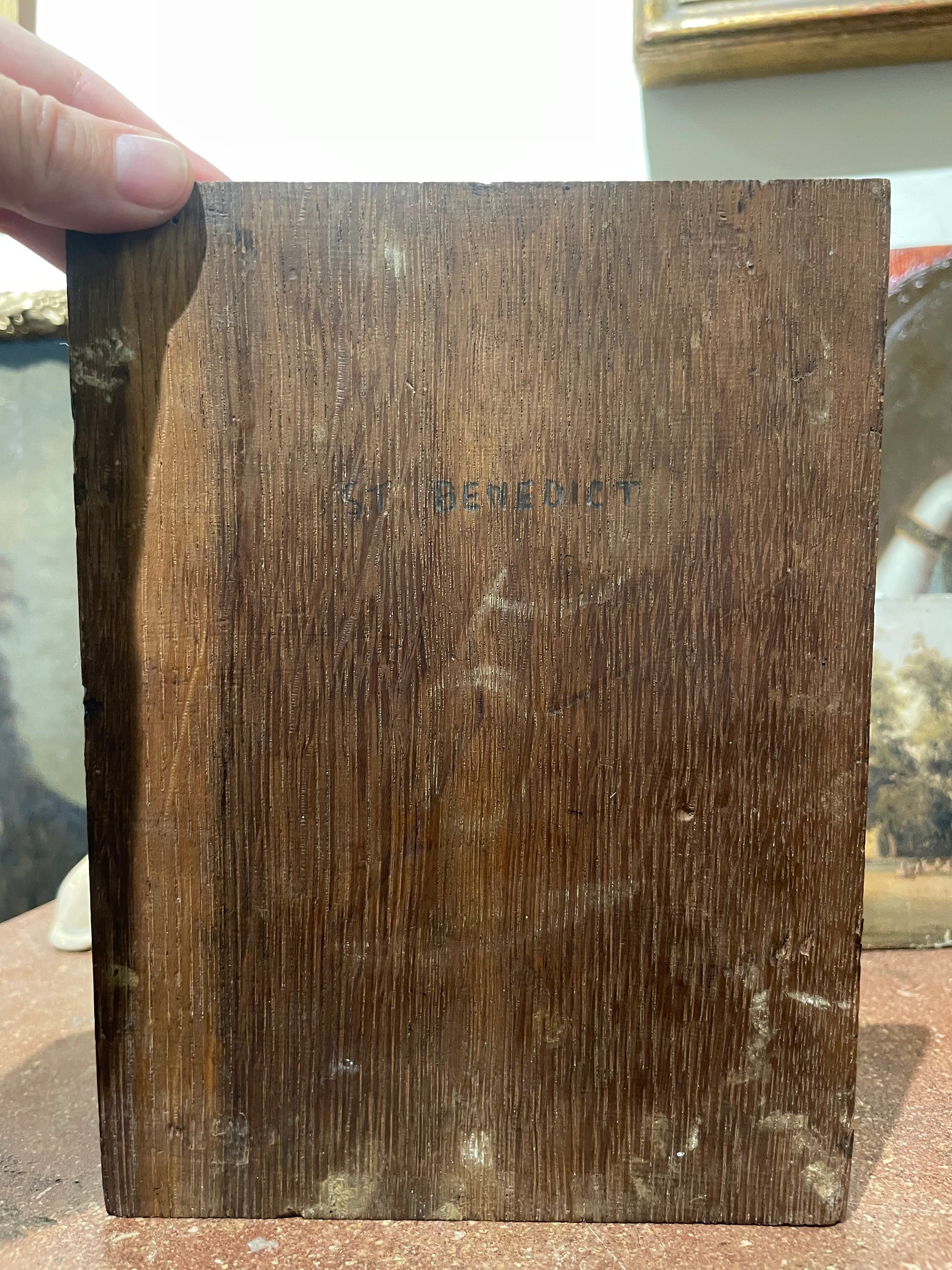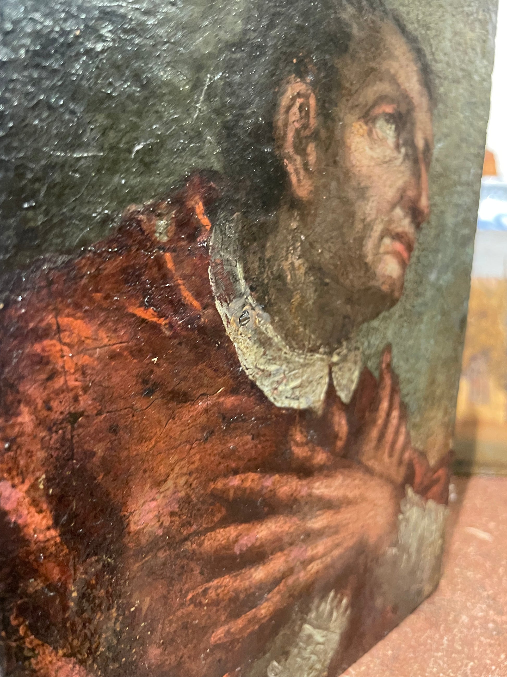 Small devotional painting depicting Saint Charles Borromeo with his hands crossed on his chest and his gaze lifted upwards. Archbishop of Milan (1538–1584), he was a leading figure of the Counter-Reformation, took part in the Council of Trent, and promoted deep reforms within the Church. Canonized in 1610, he is venerated as the patron saint of priests, catechists, and of the sick during plague epidemics.
