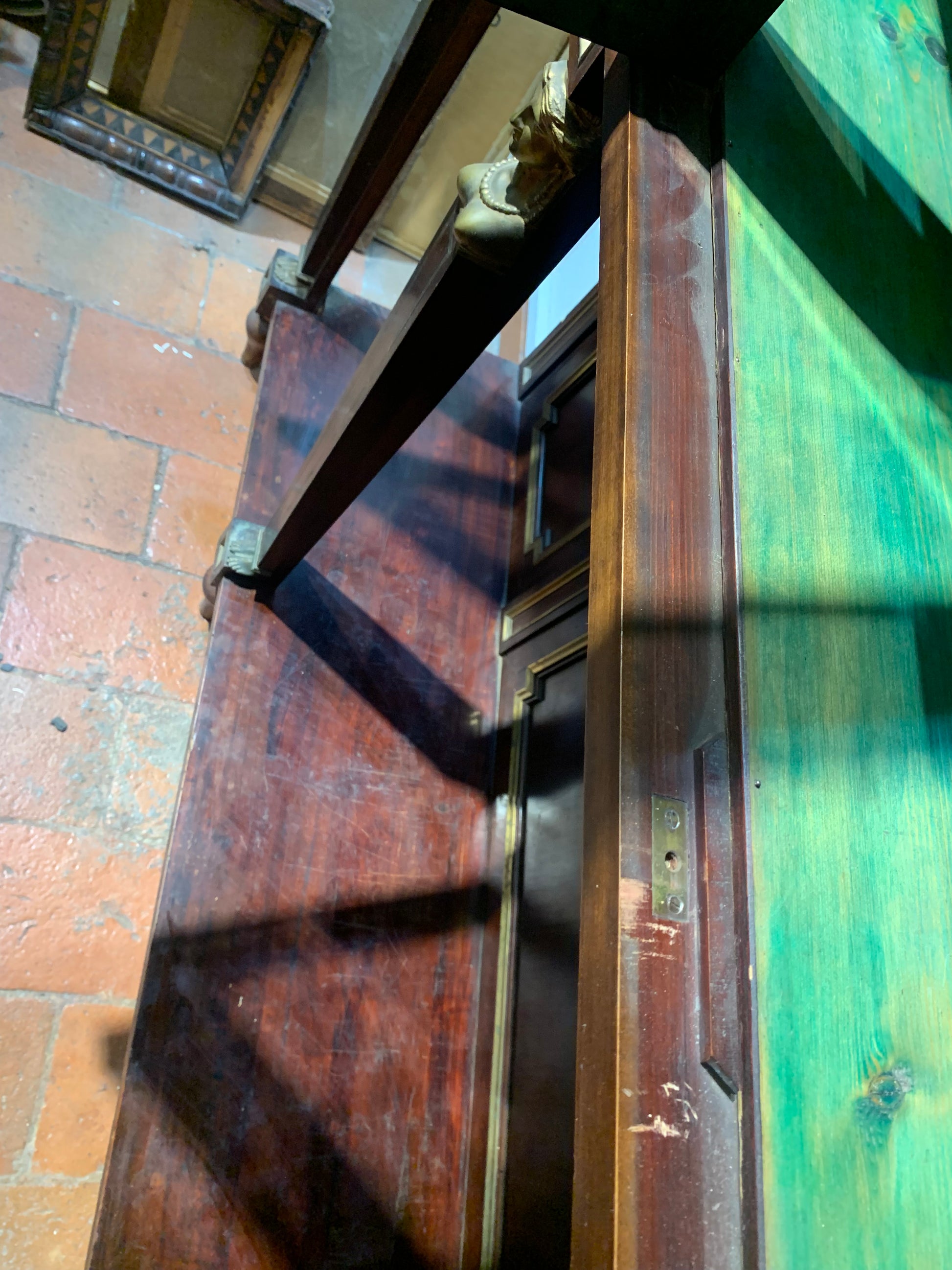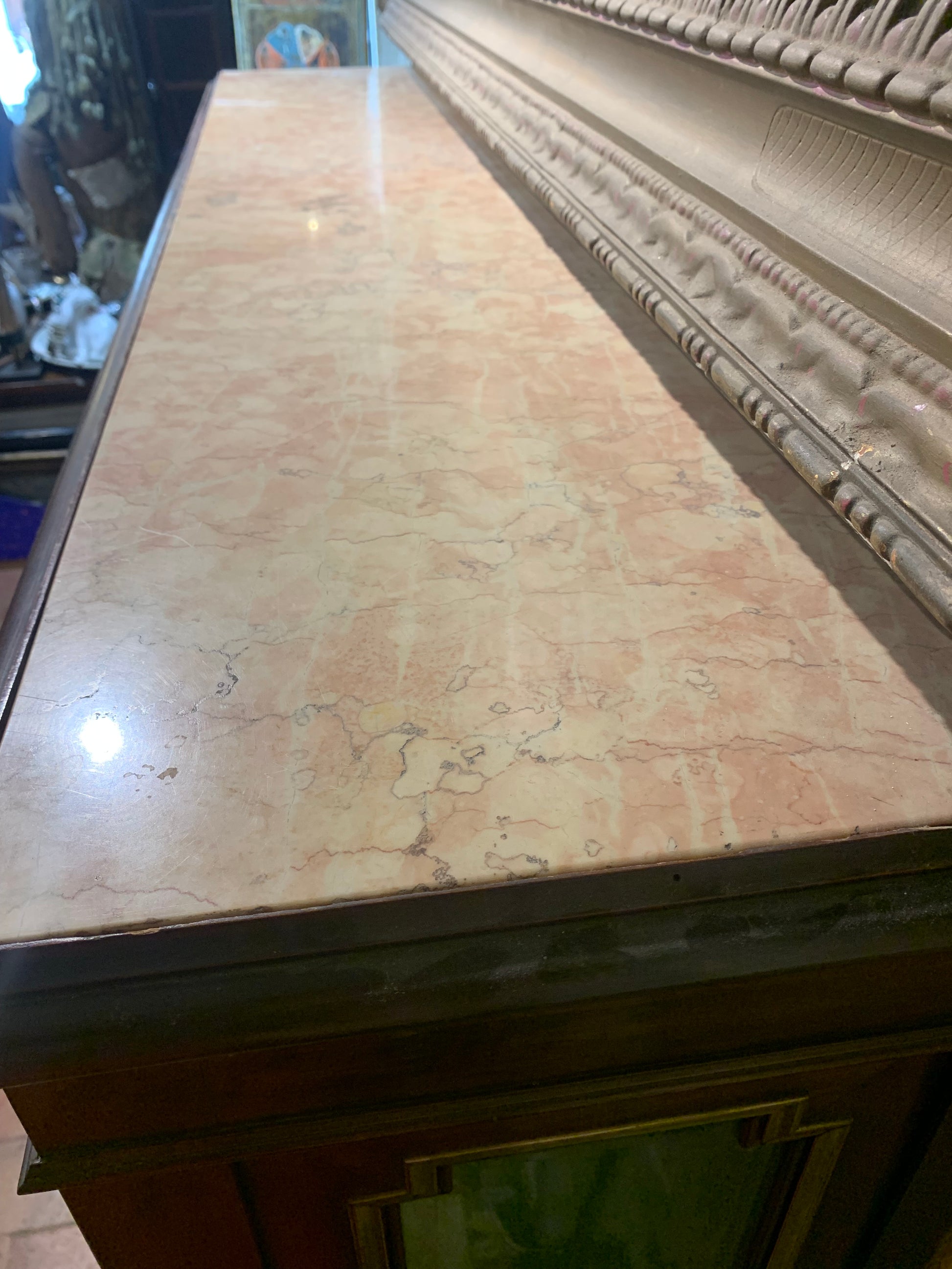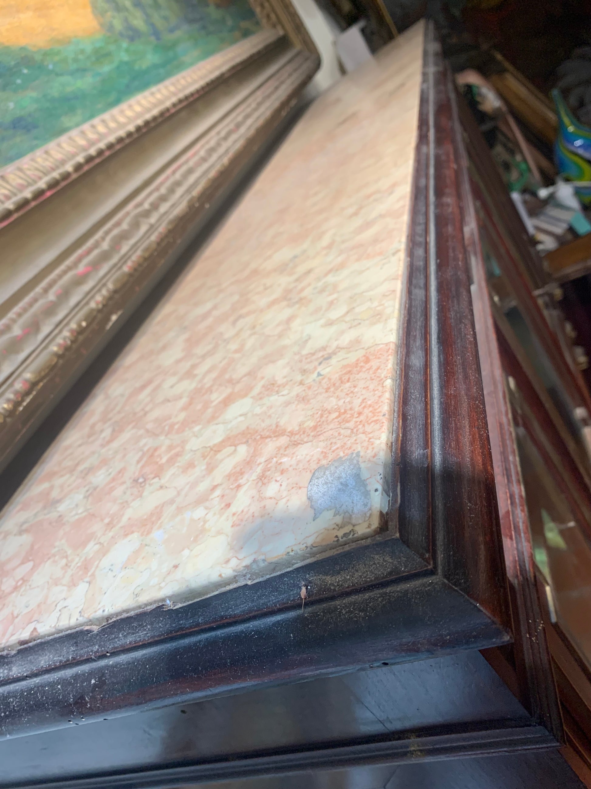 Top: The upper part boasts a marble top, albeit with some defects. With a bit of restoration, it will regain its original splendor.