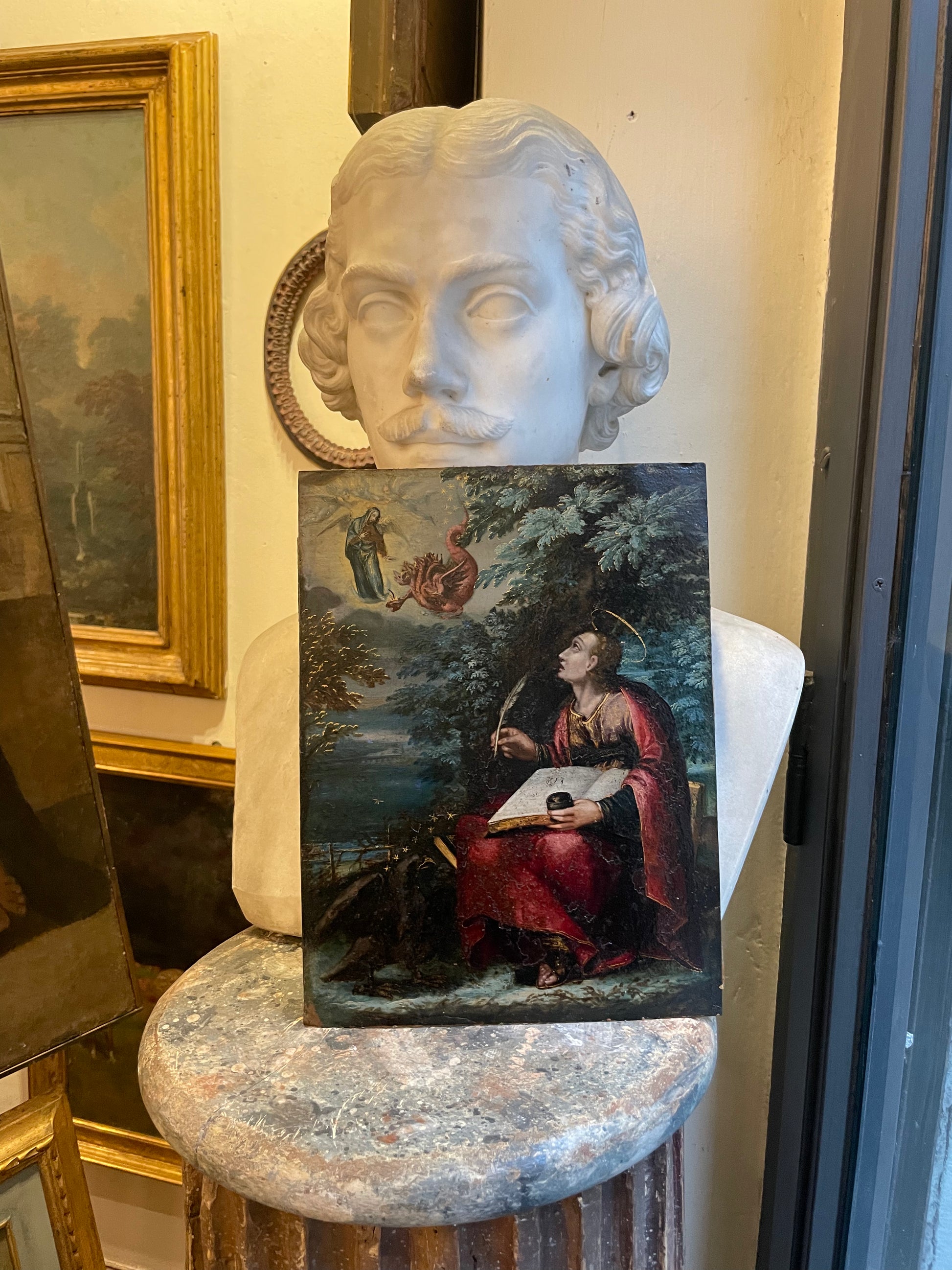 Saint John the Evangelist on Patmos. Apocalyptic Vision with the Virgin and the Dragon, Flemish School, ca. 1620