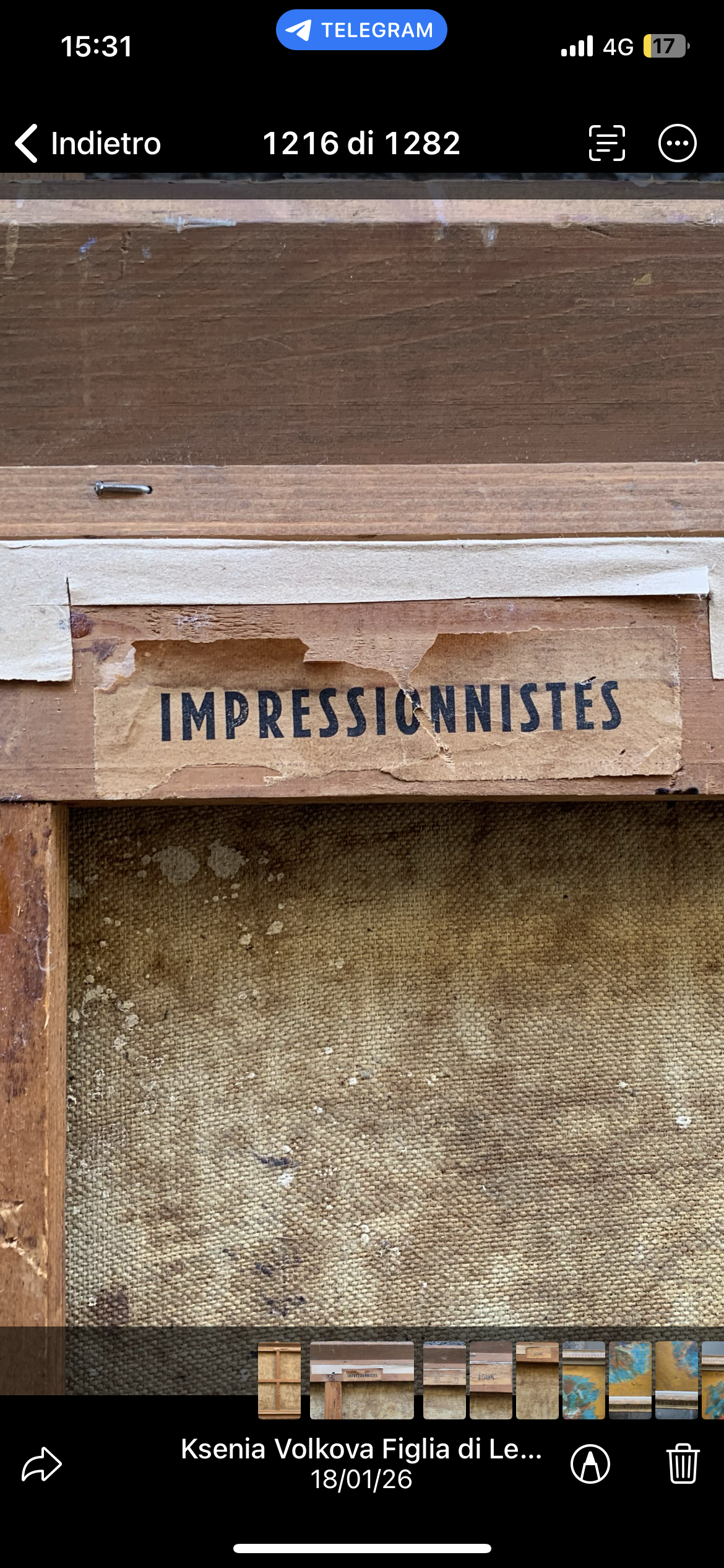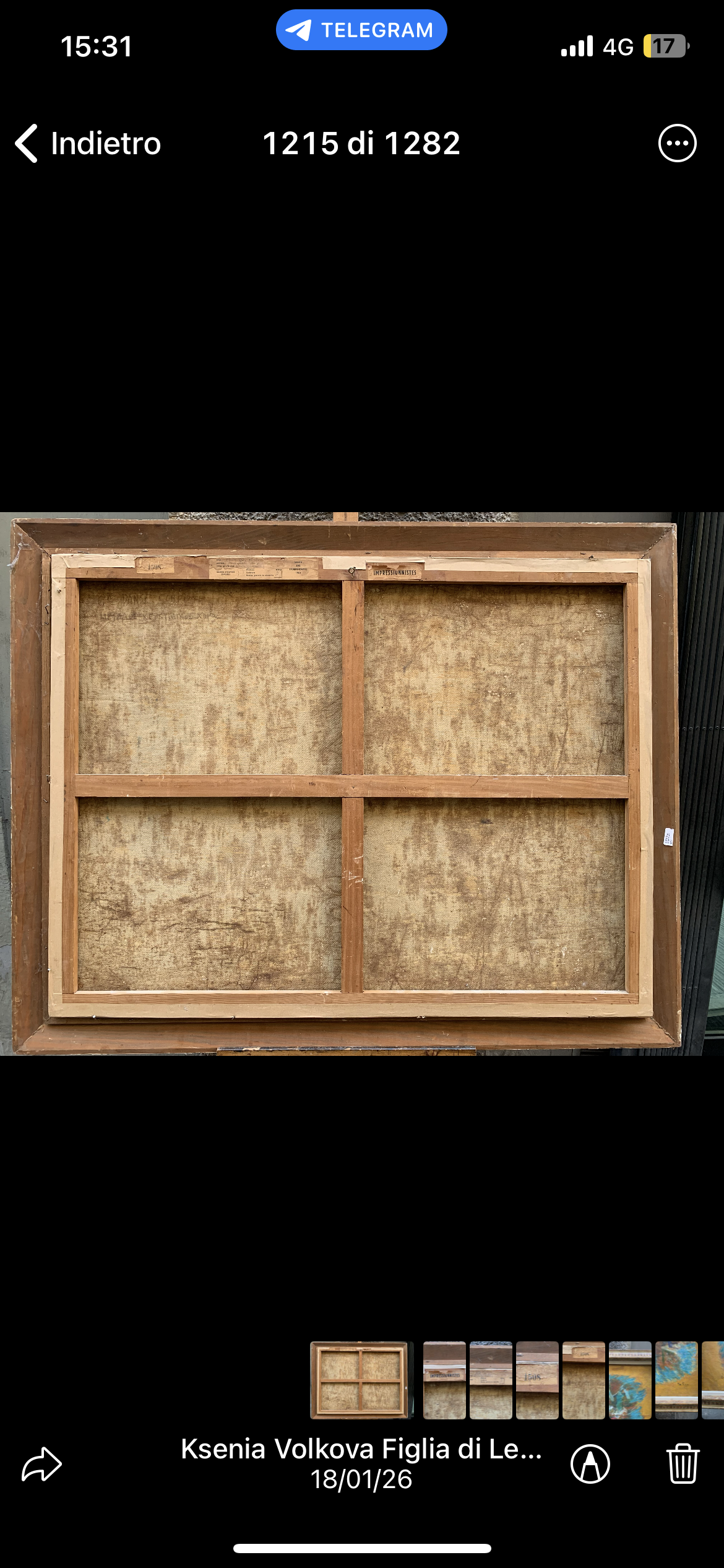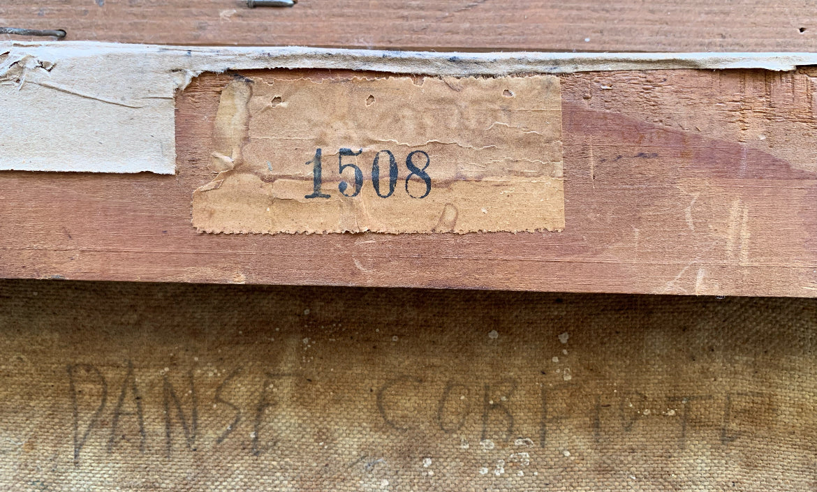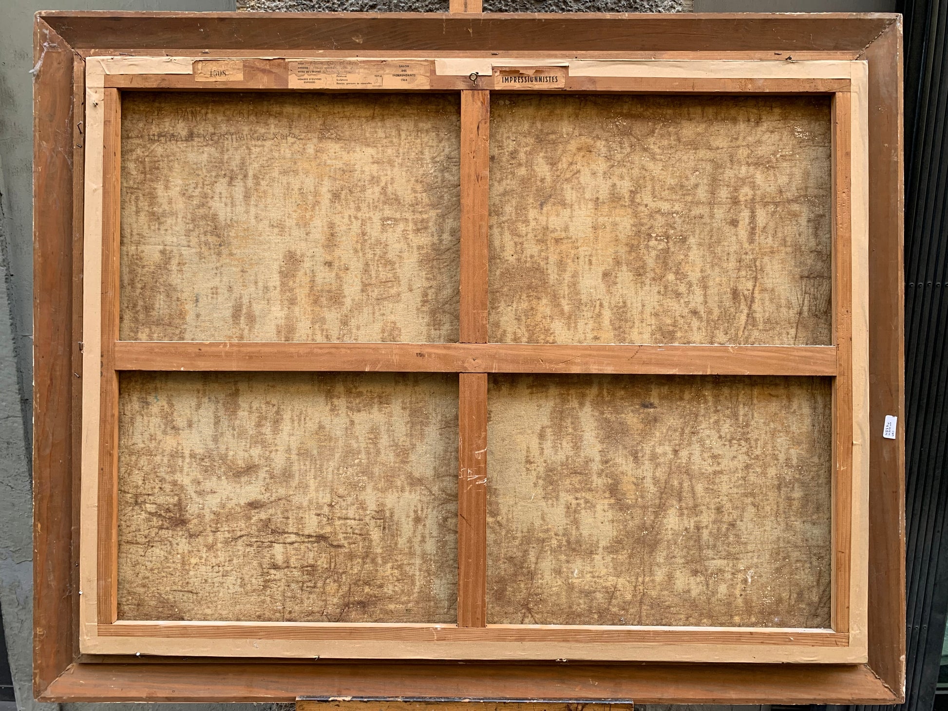 Sul retro della tela sono presenti etichette.