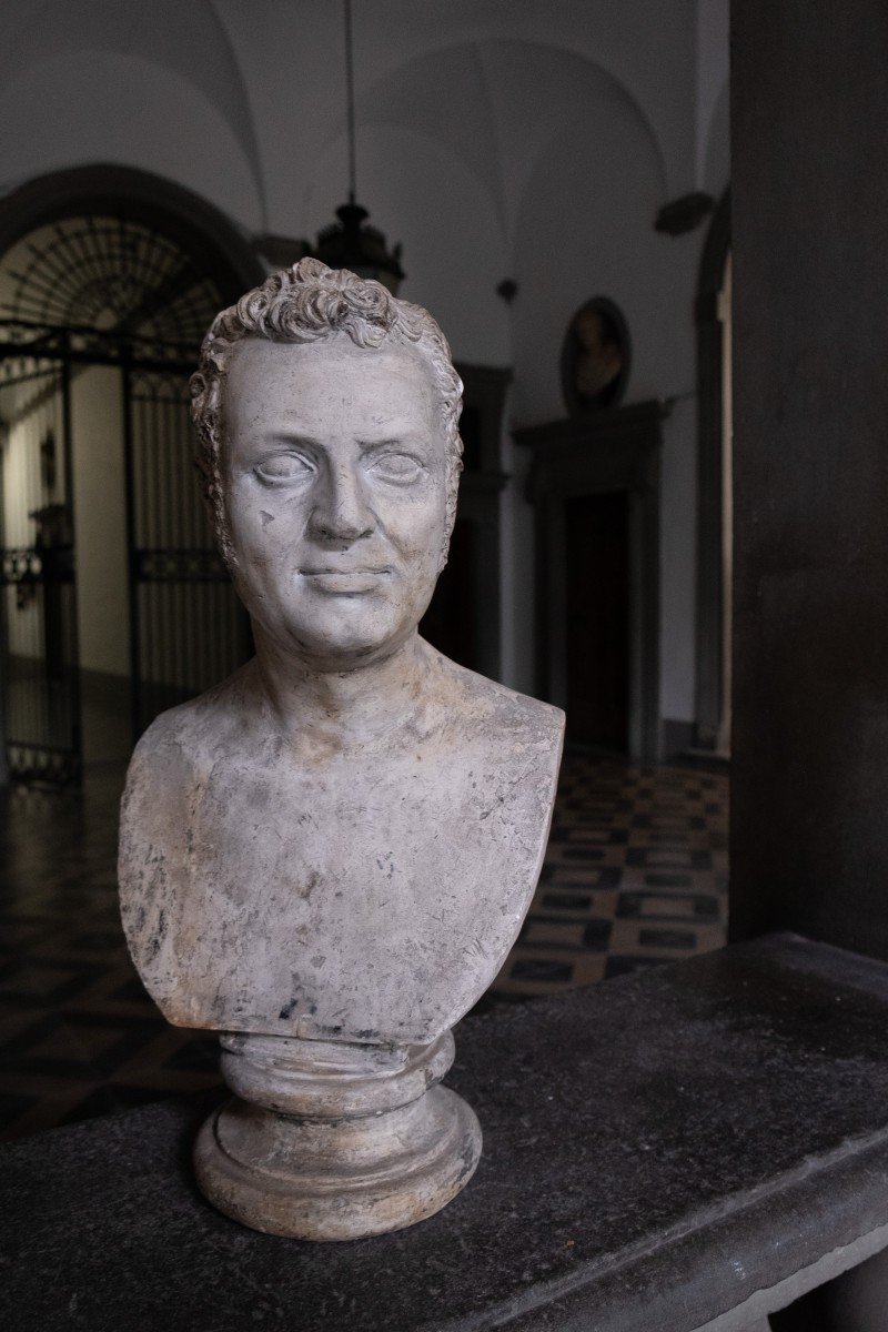 It depicts two portraits, modeled by a sculptor in the late Empire era, which depict two aristocrats from Southern Italy.