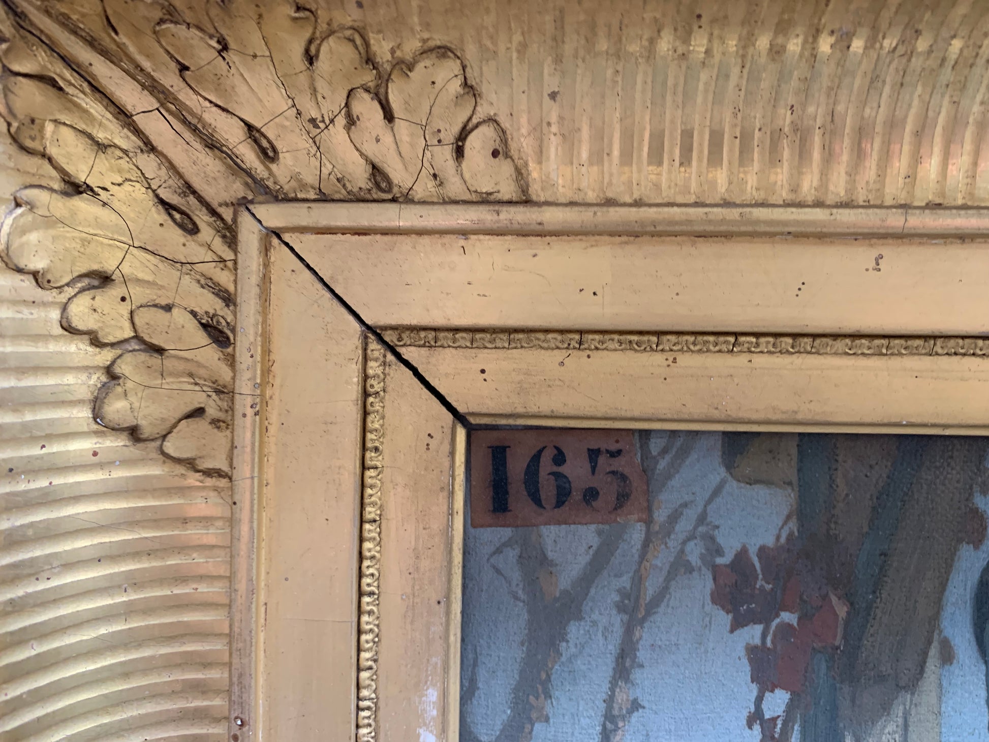 In the upper left corner of the artwork, there is a numbered label "165," which may indicate the painting's participation in an official exhibition of the time. Information regarding this is incomplete, but such numbering was commonly used in the catalogs of the Paris Salon and other provincial exhibitions, such as those in Boulogne-sur-Mer and Marseille, where Gabé exhibited his works.